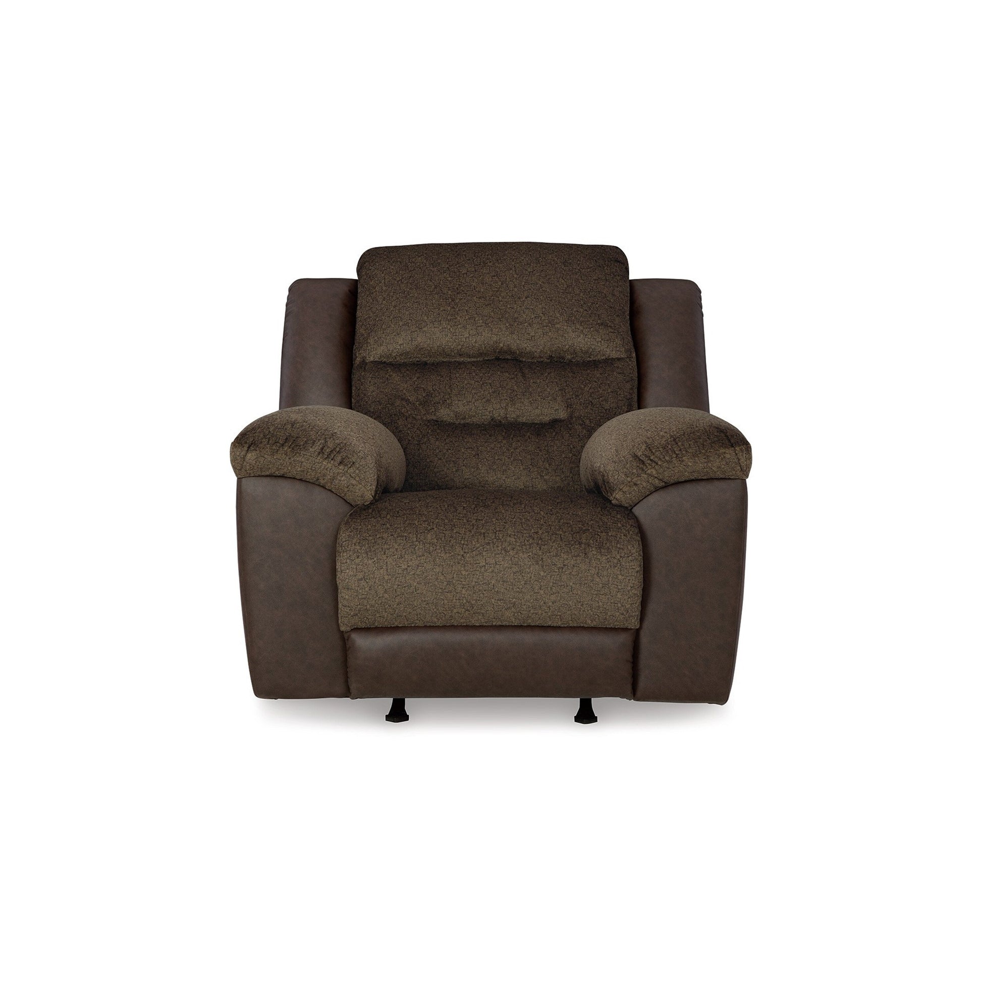 Elevate your lounging experience with this manual rocker recliner chair, a perfect blend of style and comfort. Its rich chocolate brown finish brings warmth and sophistication to any space. Furthermore, the plush upholstery, made from a premium blend of polyester and faux leather, offers a soft-to-the-touch feel while maintaining durability. Check out our Orman collection for more options.