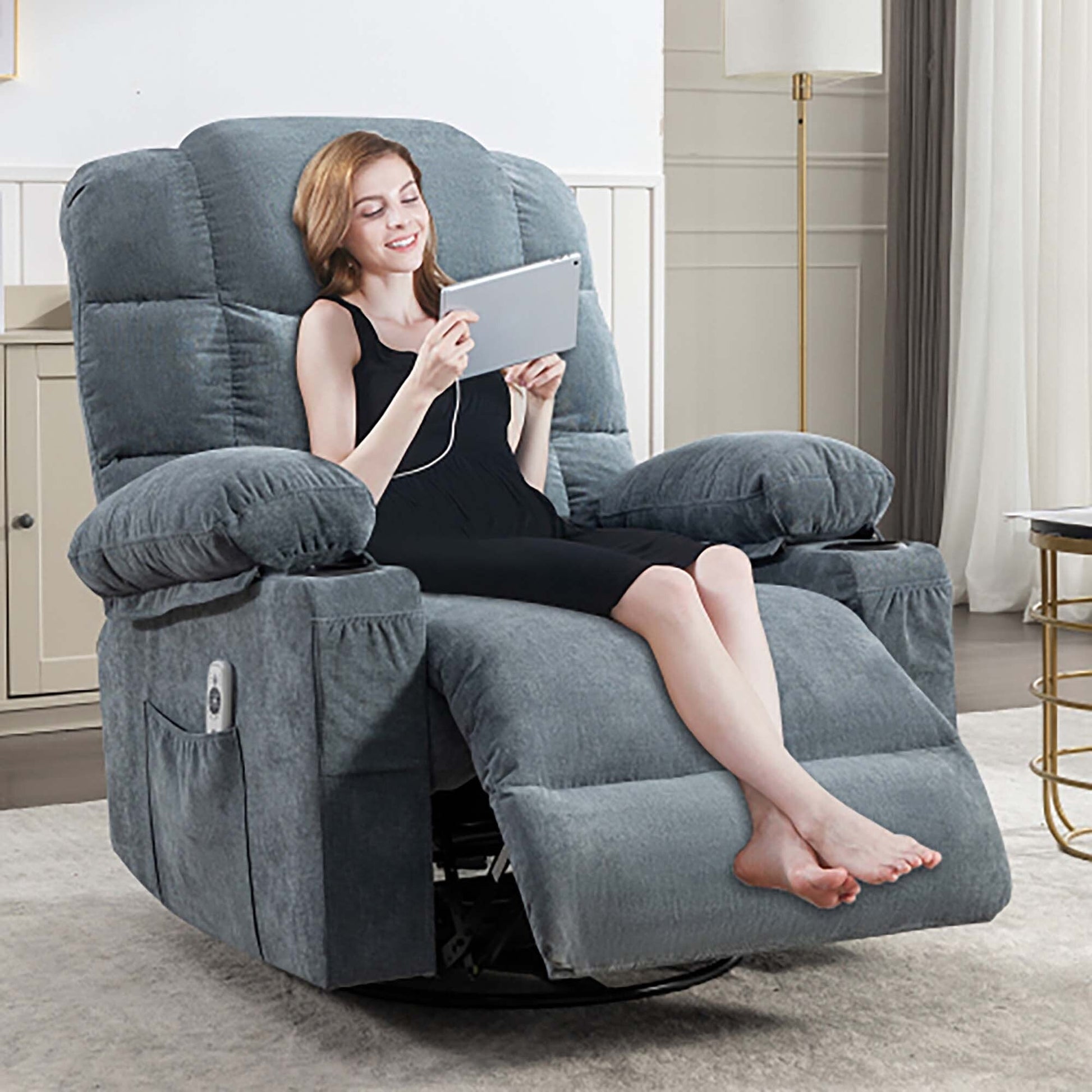 Oversized Massage Rocker Recliner Chair with 2 Cup...