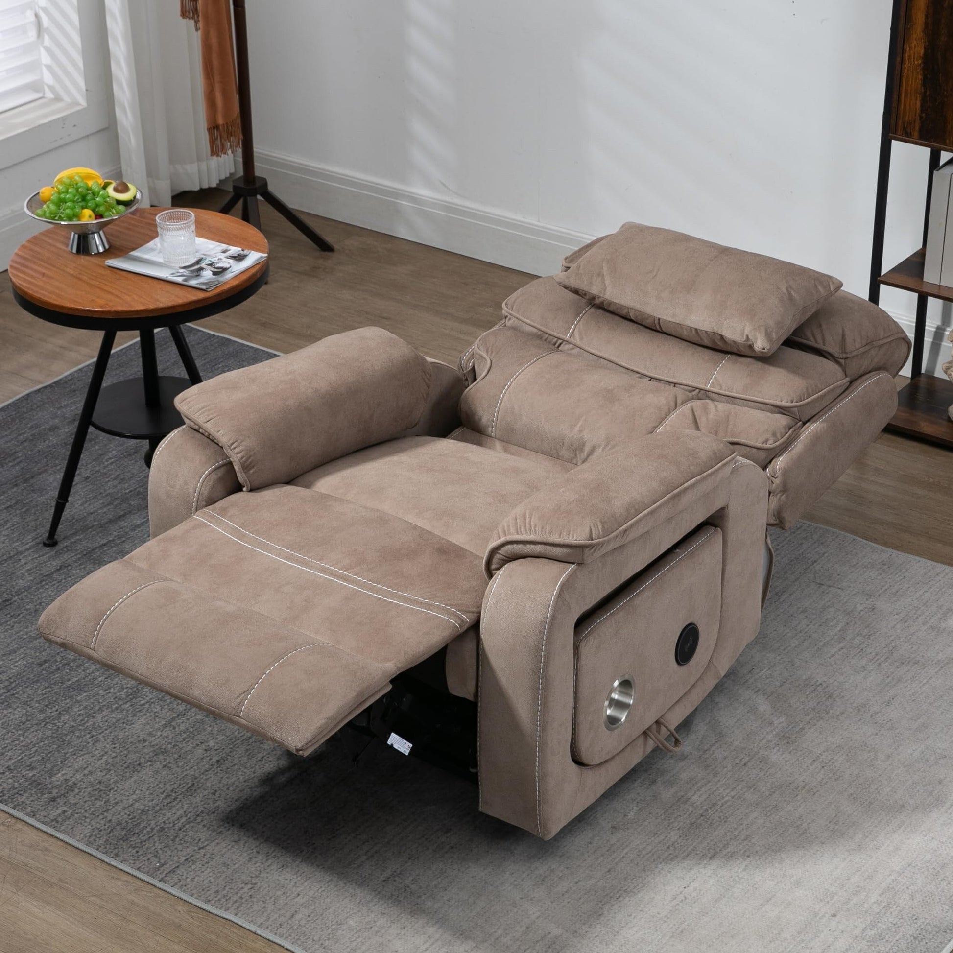 The Oversized Power Recliner Chair with a lumbar pillow. The dual motors allow you to independently control the seat backrest and footrest, allowing you to adjust the angle infinitely and keep the user in the most relaxed state. This oversized size is very suitable for burly adults.