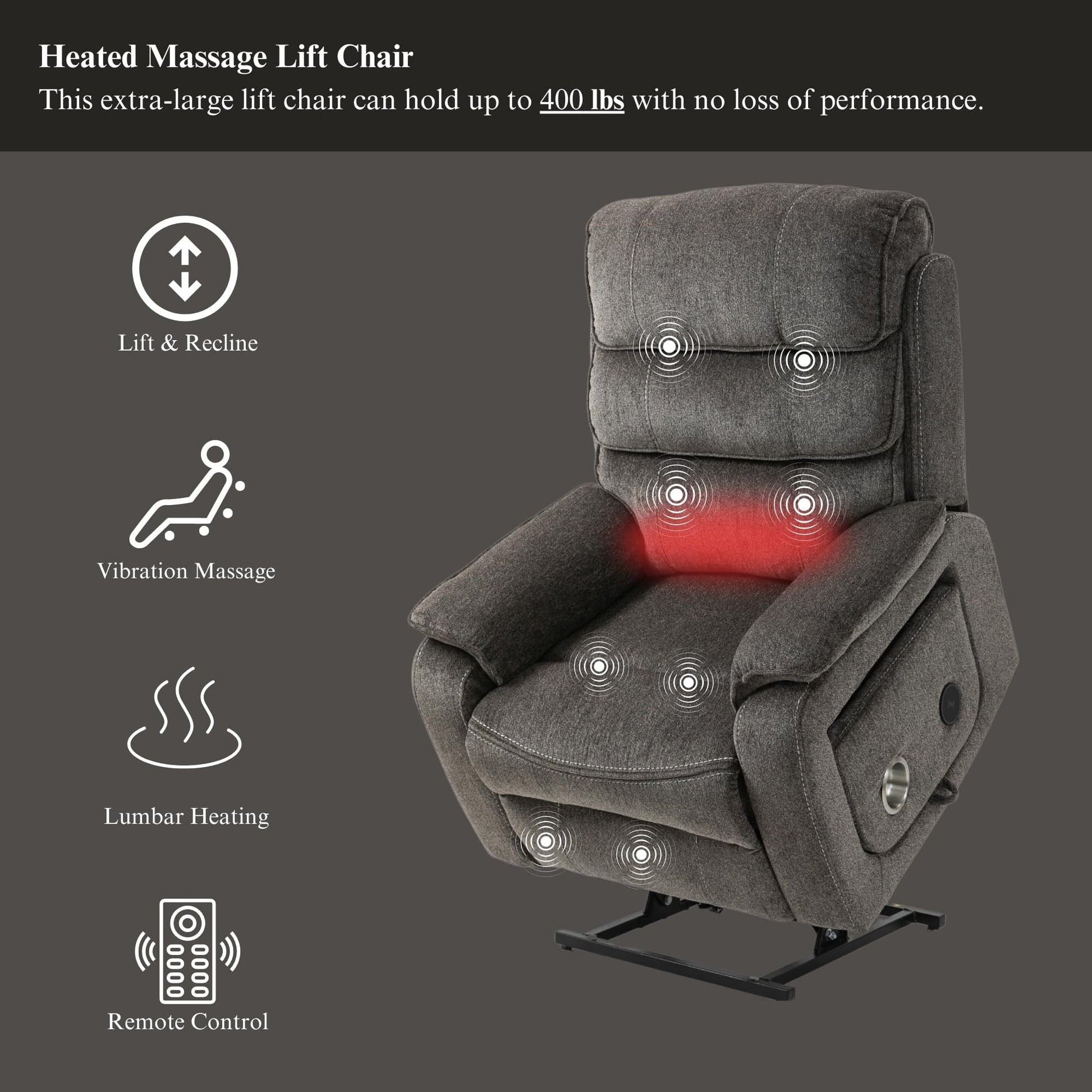 【Power Lift Recliner】- Seat width between handrails up to 24.8' for the big man. Your Dual-OKIN motor lift sleeping recliner reclines up to 180 degrees, so you can lie down and have a good sleep! The dual motors enable you to independently control the seat back and the footrest to adjust the angle infinitely to keep the user in the most relaxed state. So say goodbye to back pain, waist pain, or leg pain caused by uncomfortable sitting posture from today on!