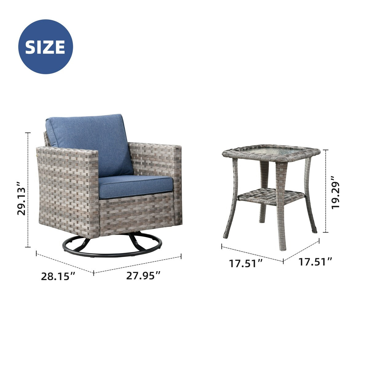 OVIOS 2-piece Swivel Rocking Wicker Chair Side Table Conversation Set