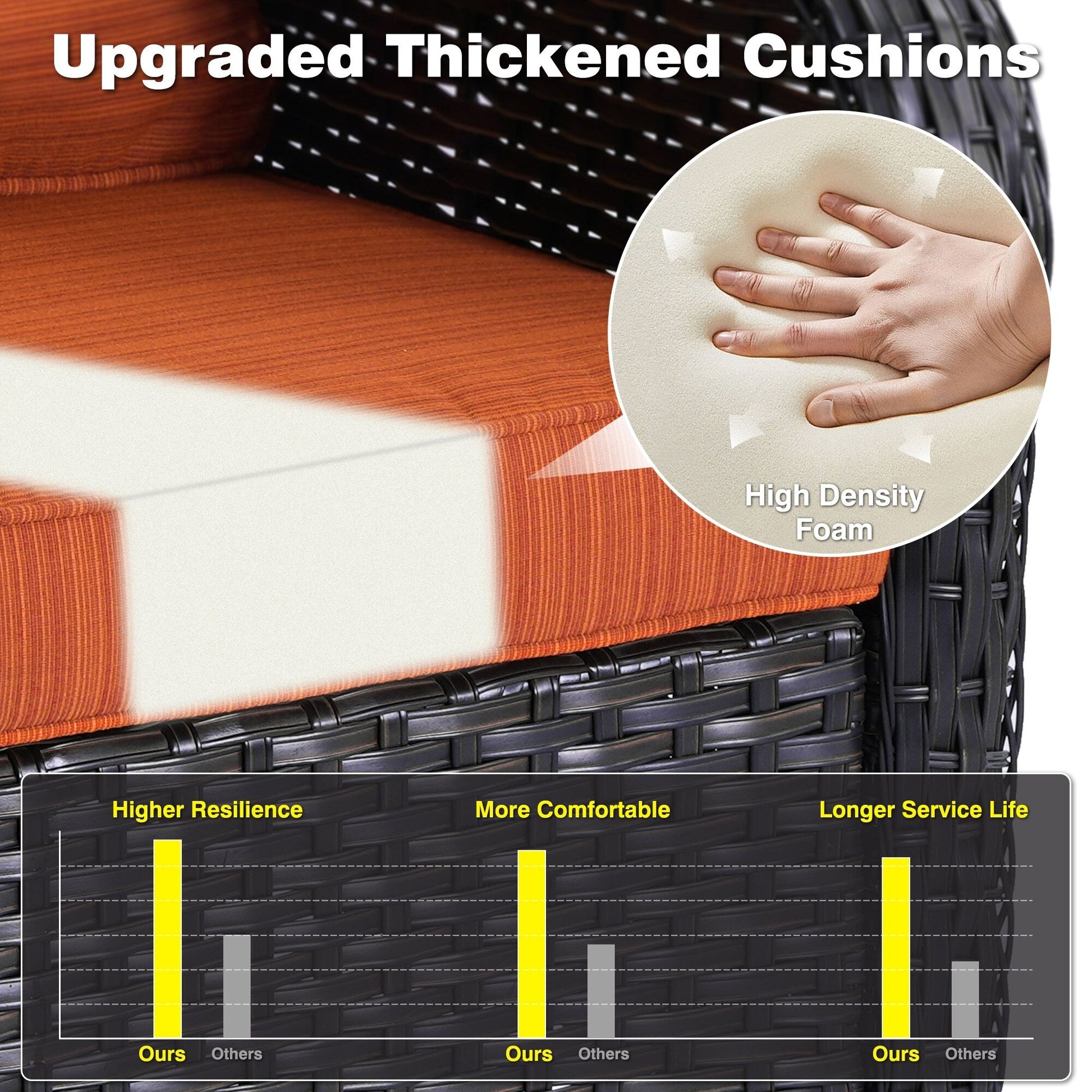 Create an outdoor oasis with the OVIOS 5-piece Patio Conversation Wicker Furniture Set. This set includes two armchairs, one sofa, and two ottomans, all crafted with commercial-grade, all-weather PE rattan for long-lasting durability. The thick sponge seat cushions offer comfort and relaxation, while the high backrests and curved armrests provide ergonomic support. With waterproof covers that are easy to clean, this set is perfect for any patio, porch, poolside, or garden. Choose from multiple colors to match your style and elevate your outdoor space.