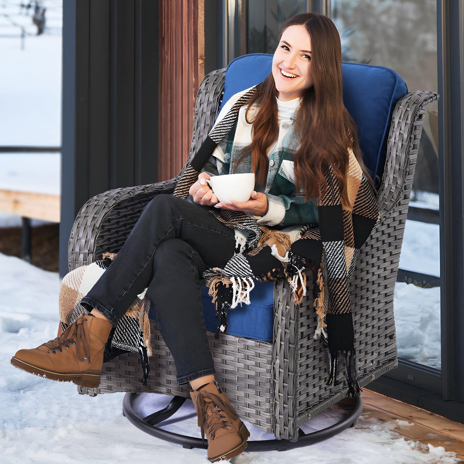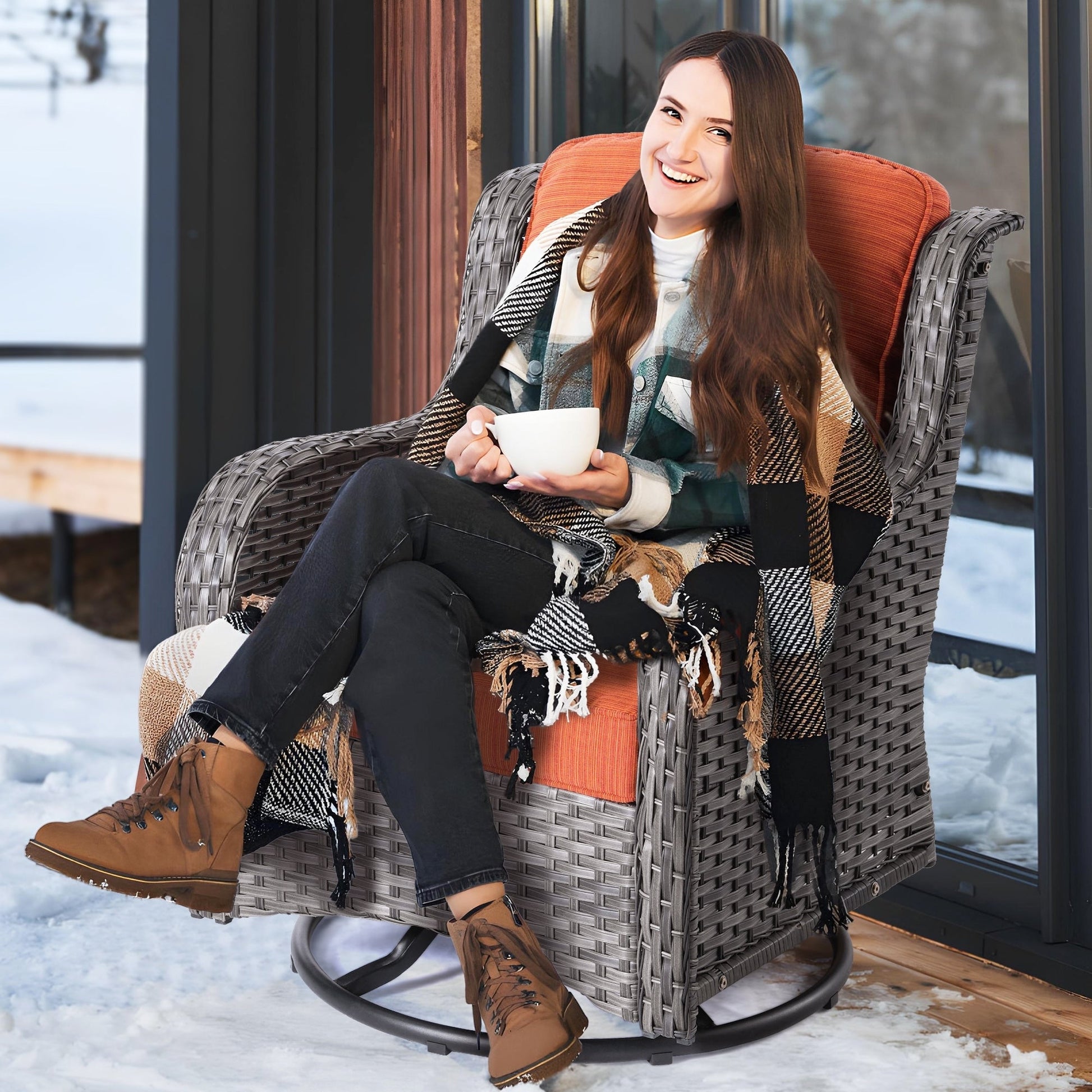 Durable, weather-resistant wicker frame C Built to withstand outdoor conditions