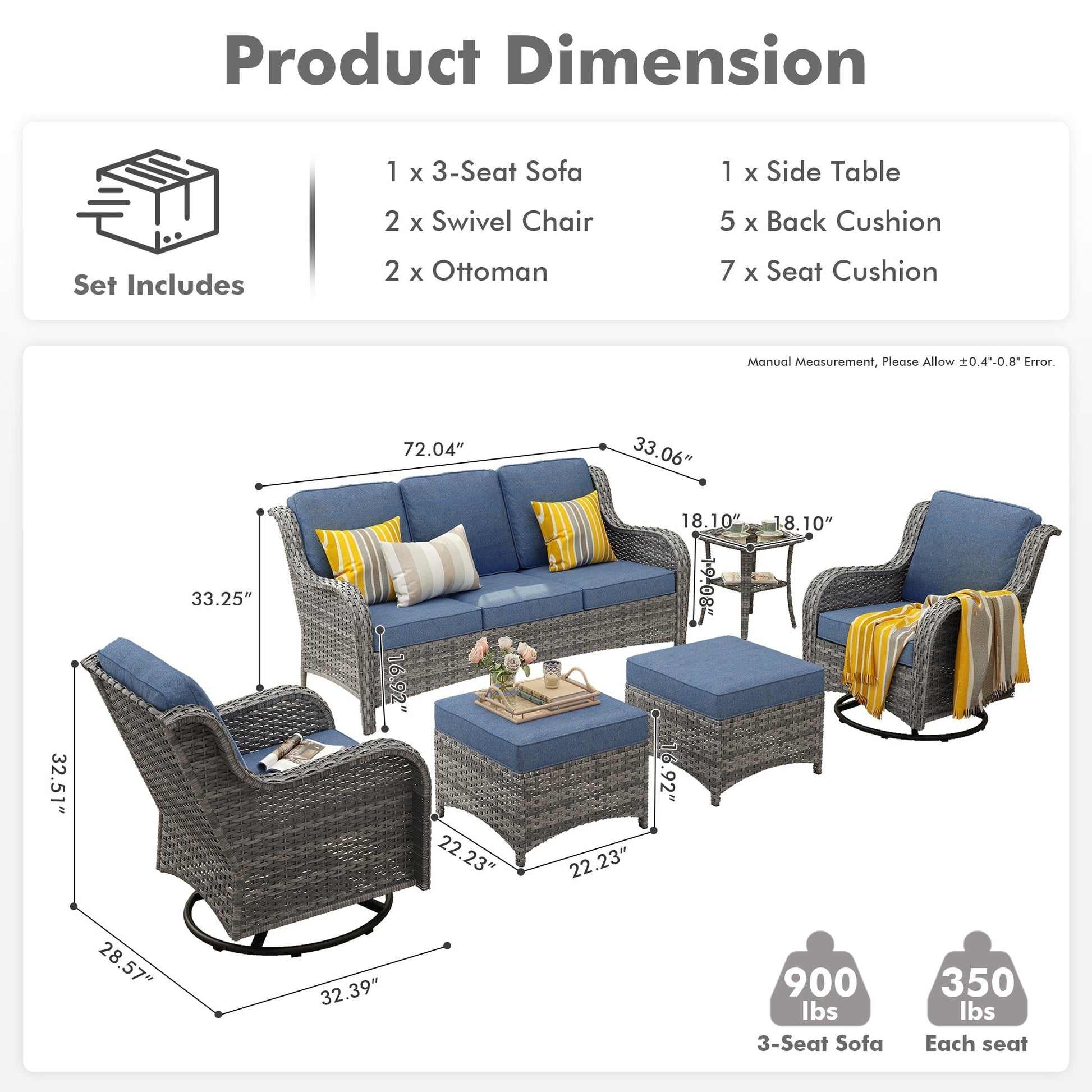 Upgrade your outdoor living area with the OVIOS 7-piece sofa set, offering the perfect combination of style, comfort, and functionality.