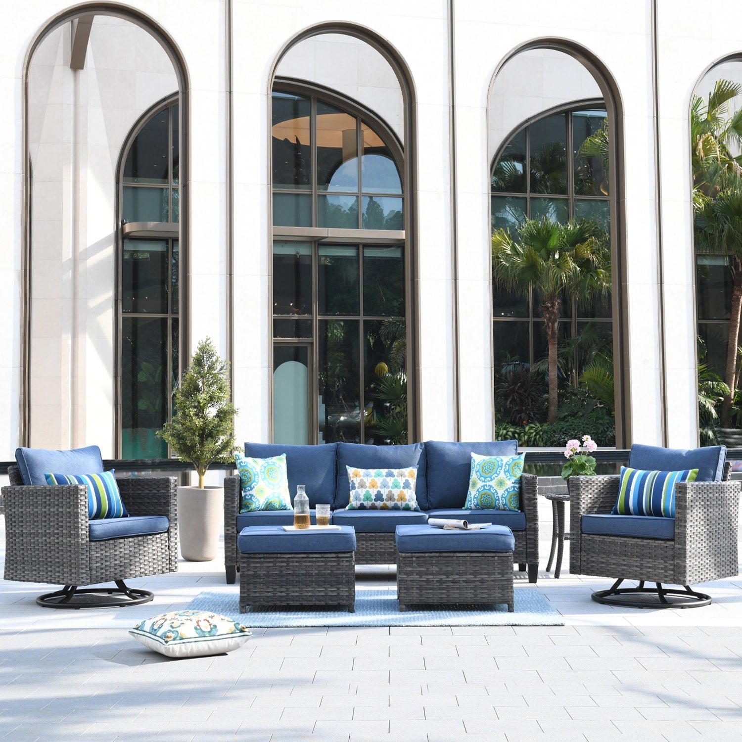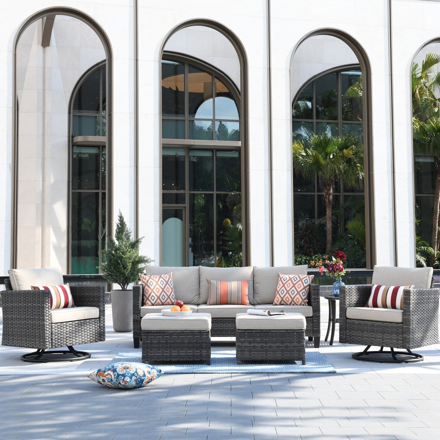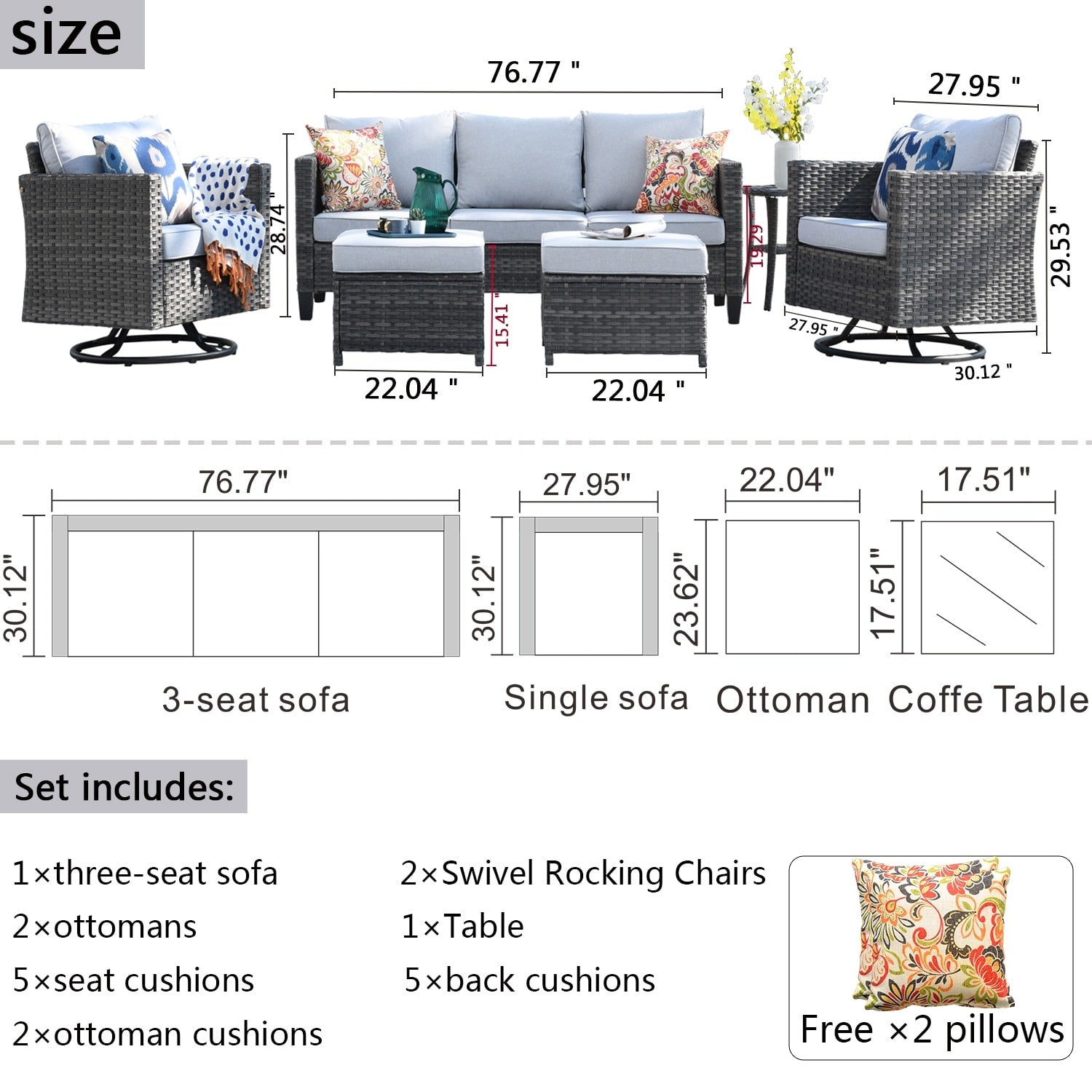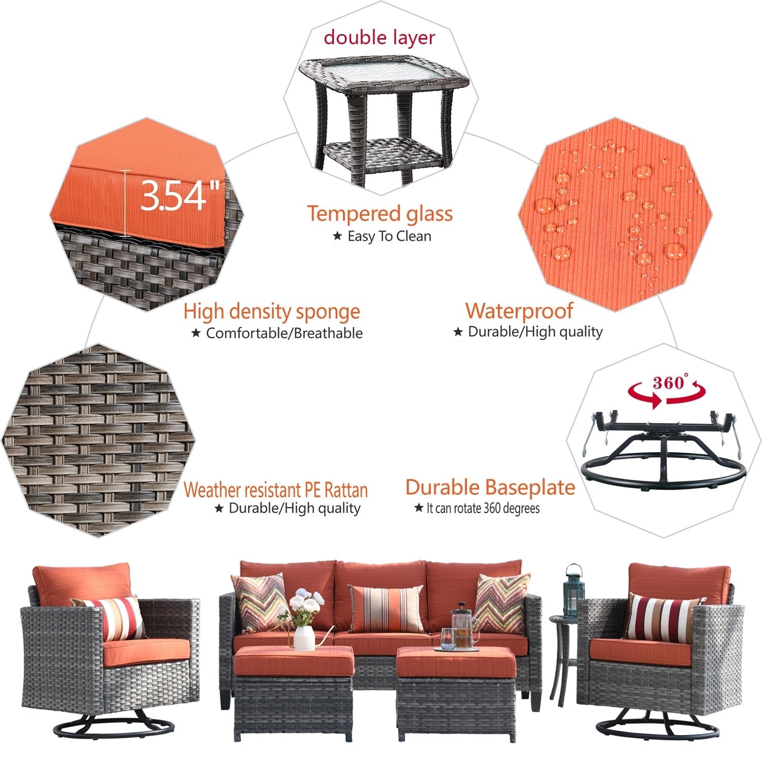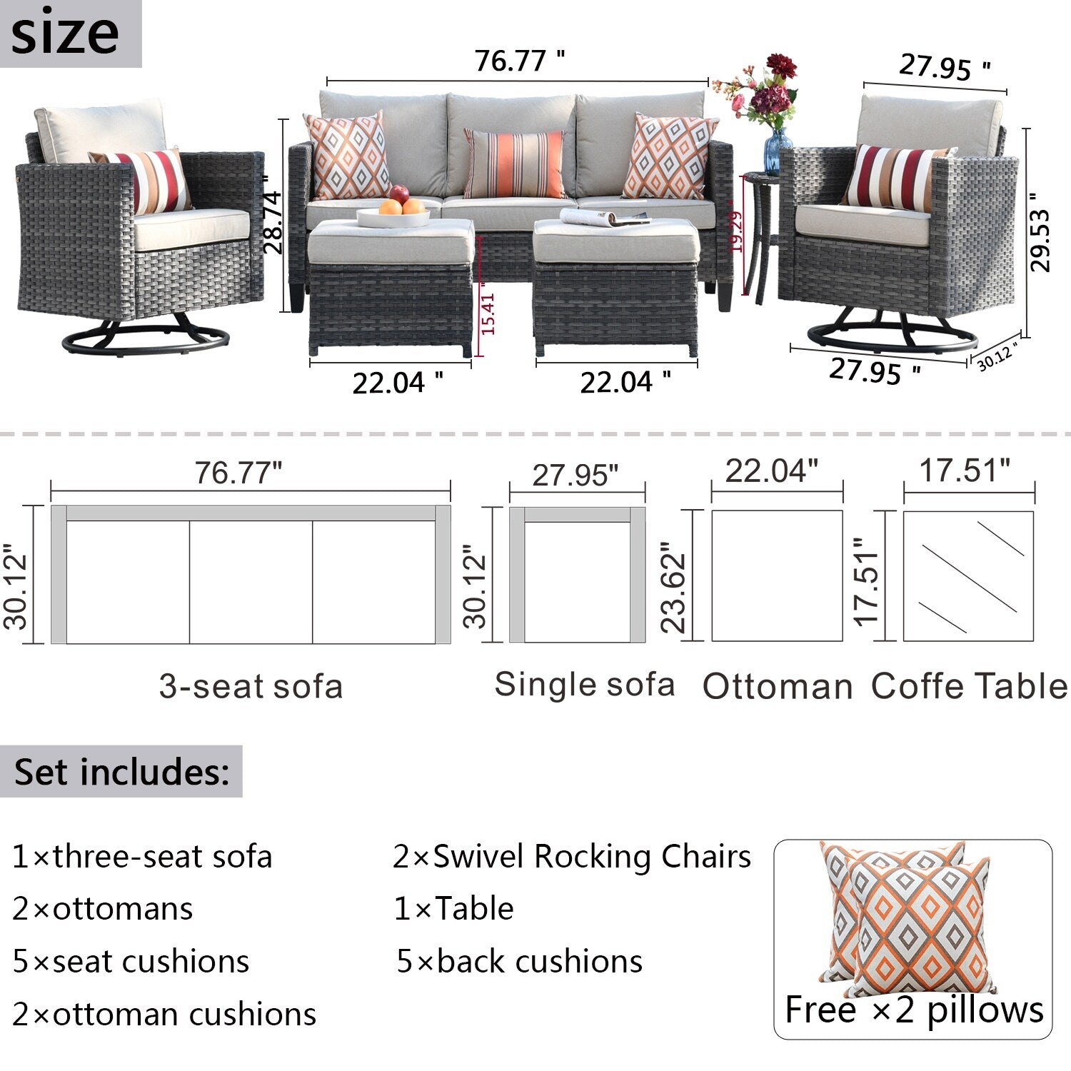OVIOS 6-piece Patio Wicker Conversation Sofa Set with Swivel Rocking Chairs