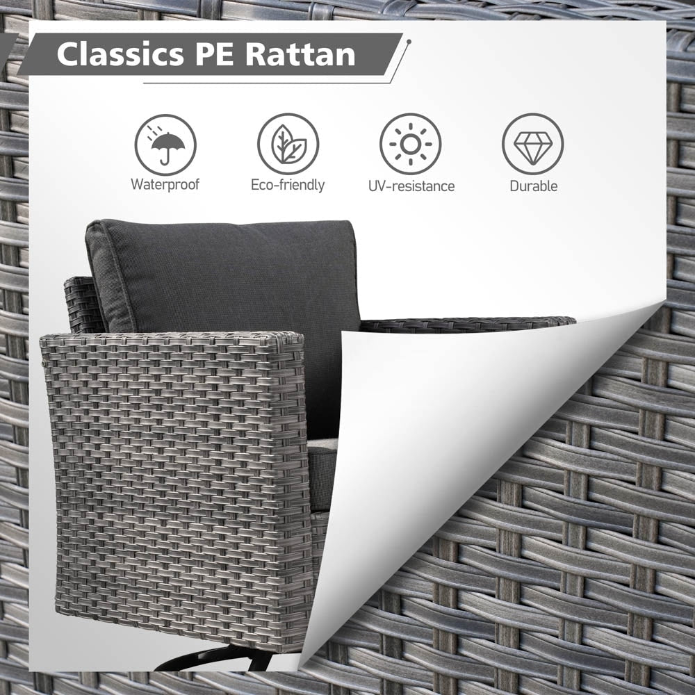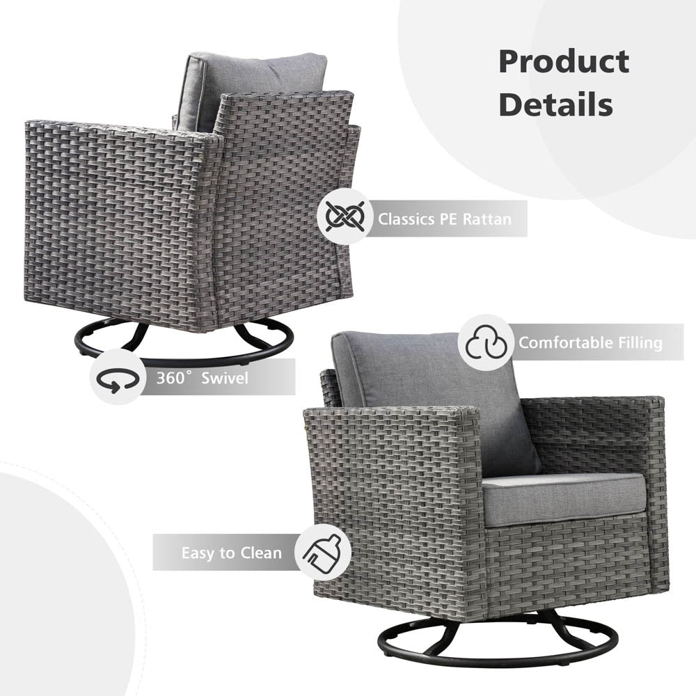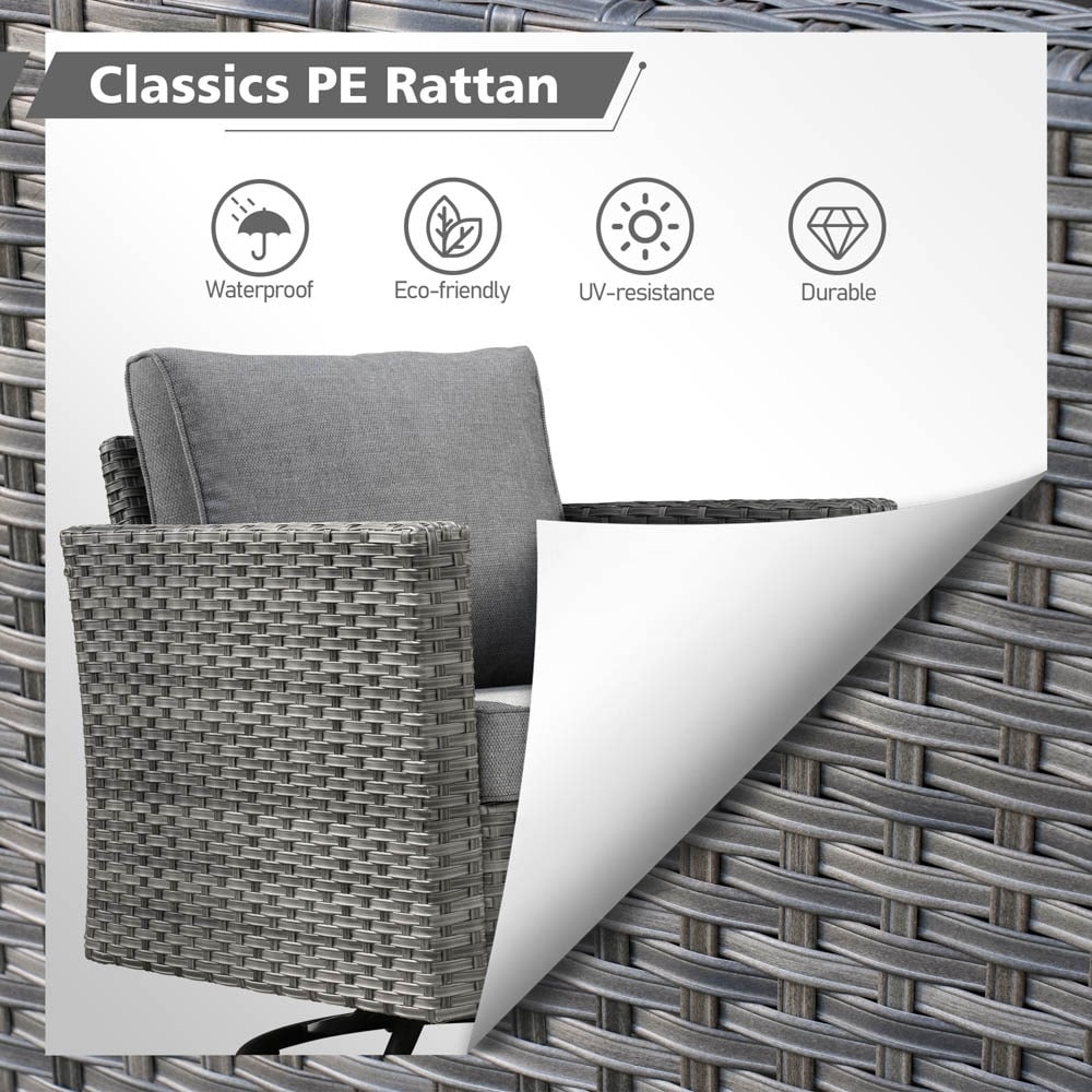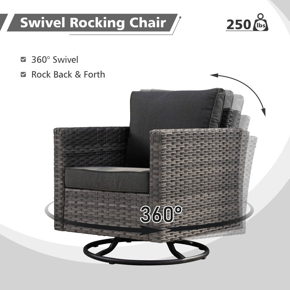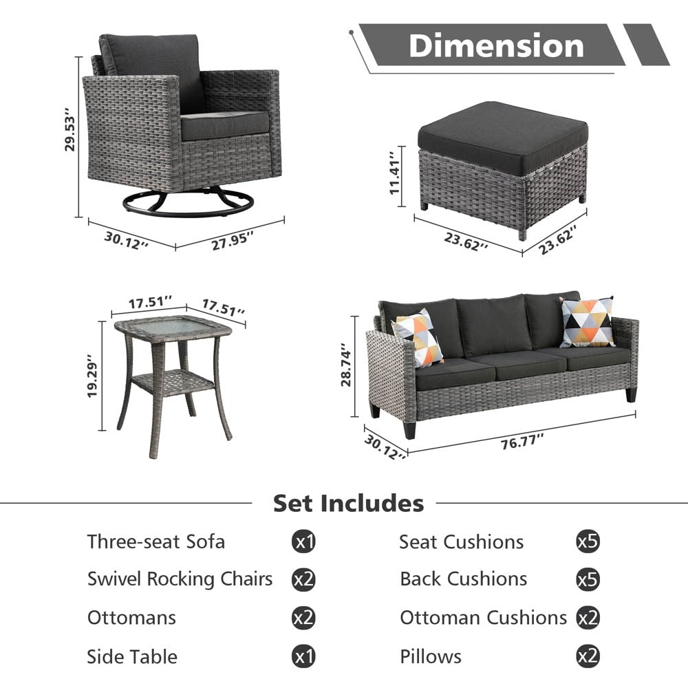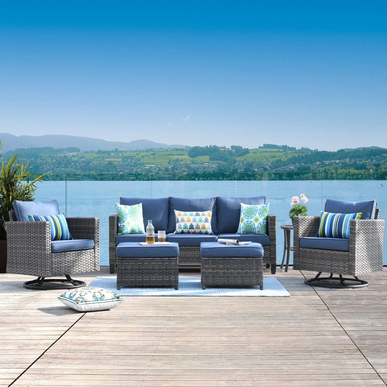 OVIOS 6-piece Patio Wicker Conversation Sofa Set with Swivel Rocking Chairs