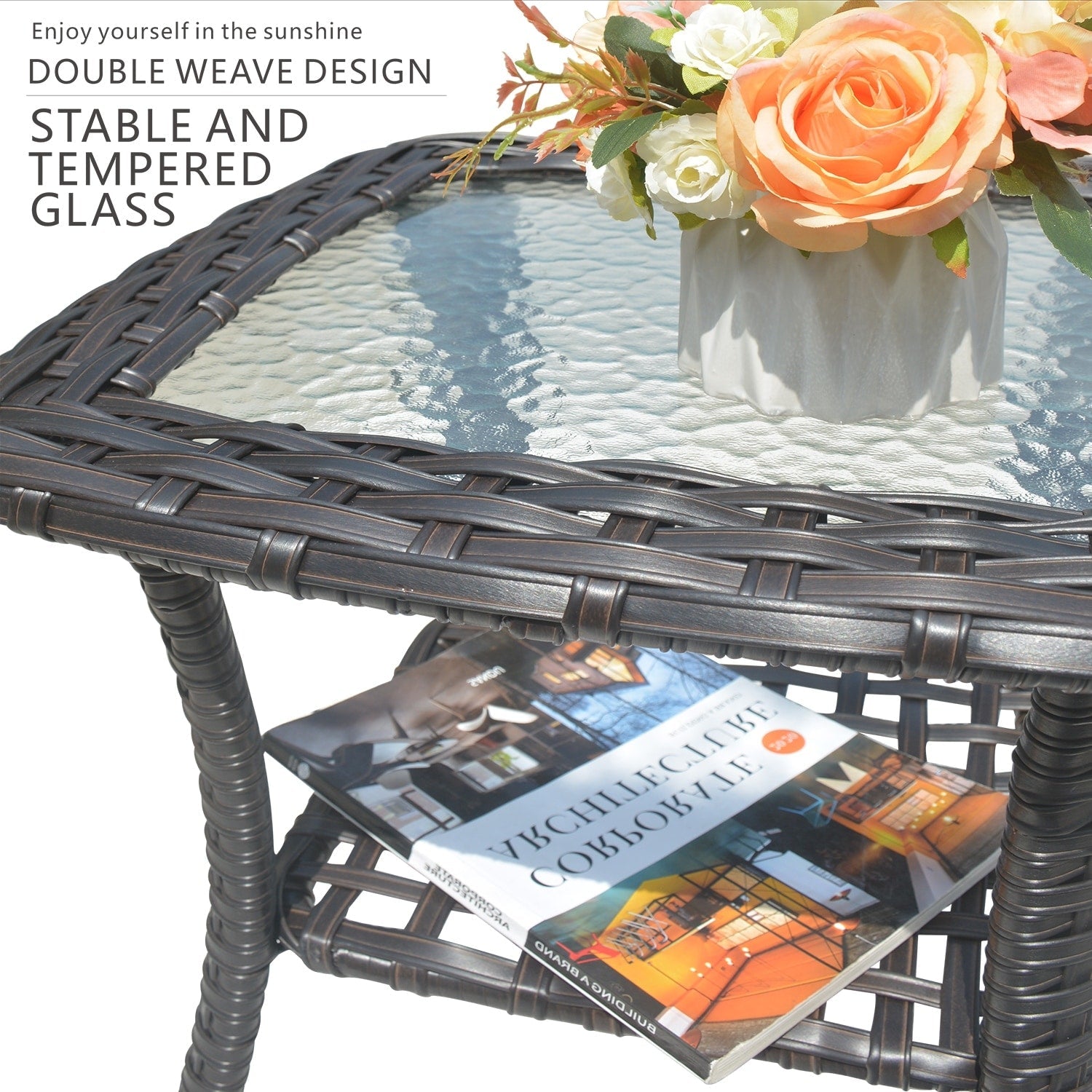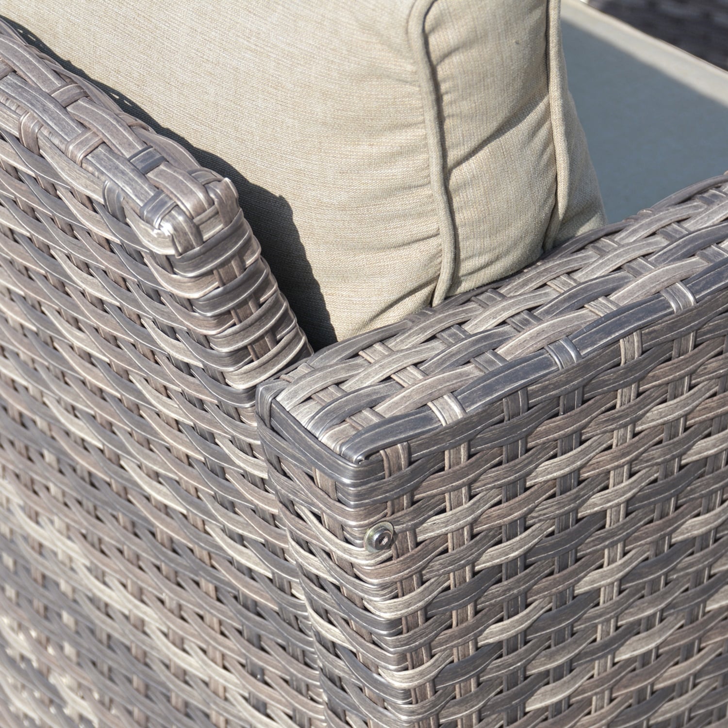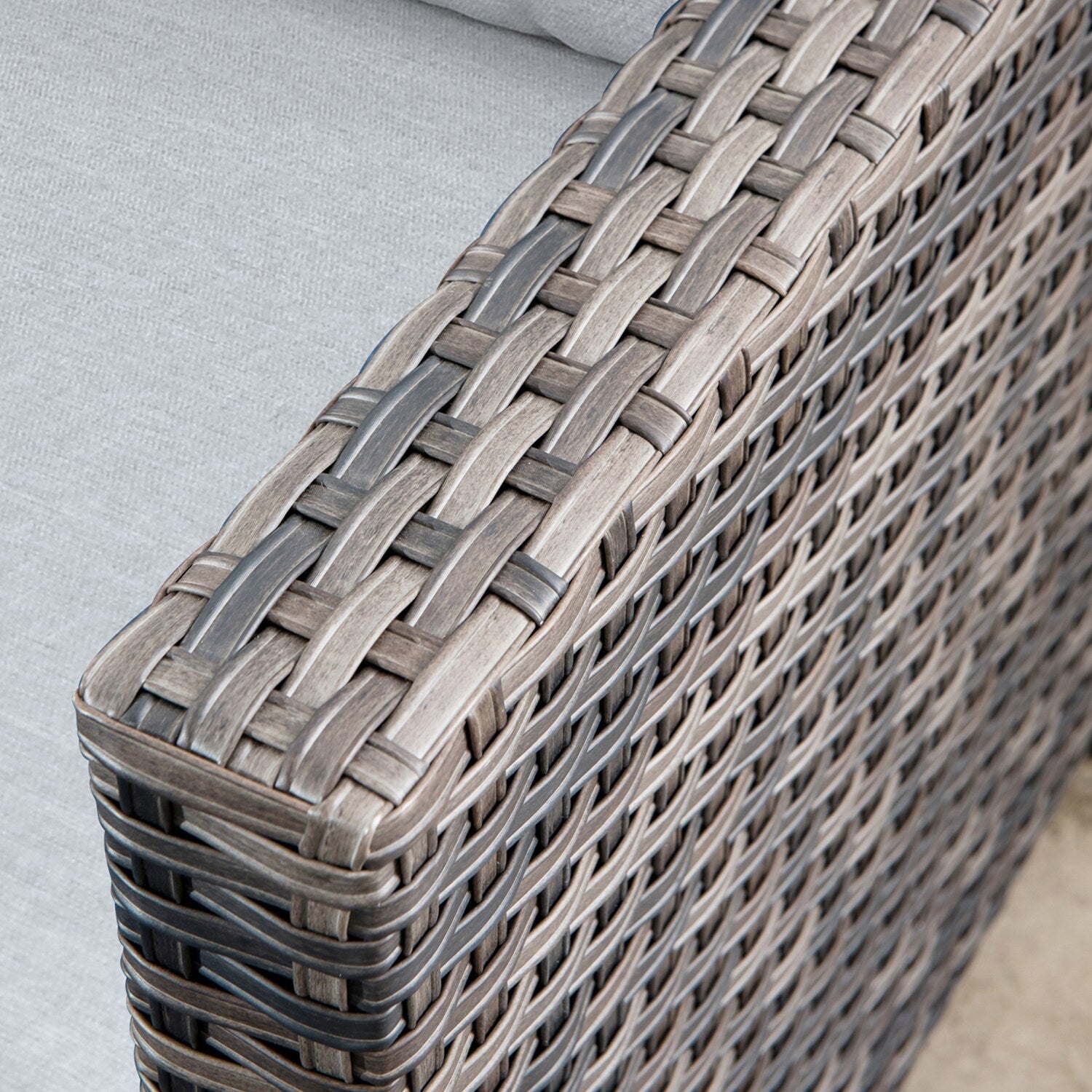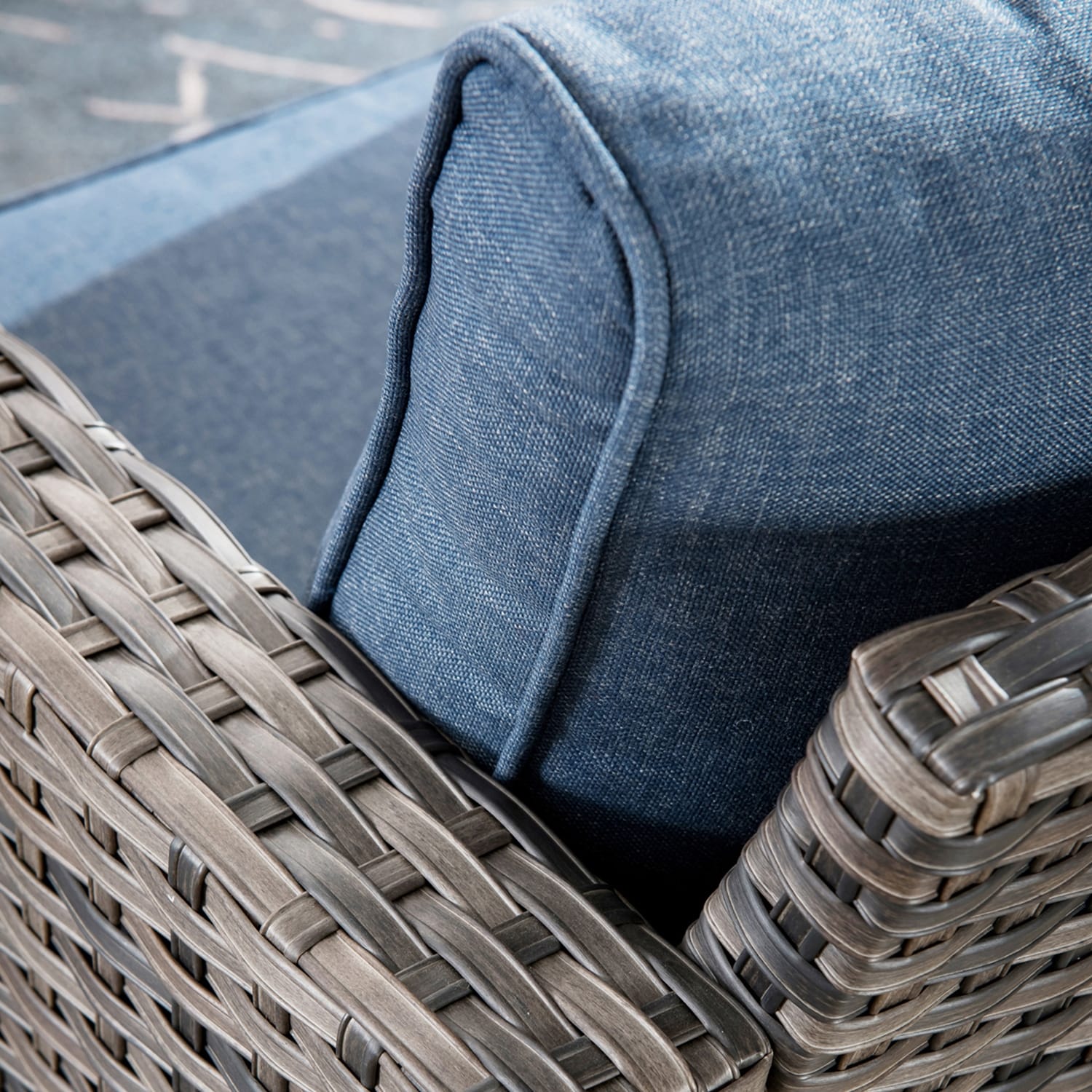 Create a cozy outdoor oasis with the OVIOS Wicker Sectional Sofa and Swivel Rocking Chair 6-piece Set. This set is designed for comfort and durability with powder-coated metal frames and grey PE rattan that can withstand any weather condition. The high-density sponge cushions and UV and water-resistant fabric cushions offer ultimate relaxation while the 2 rocking arm chairs with 360-degree swivel bases, 3-seat sofa, 2 ottomans, and side table with tempered glass top and open shelf provide ample seating for up to 5 guests. Choose from red, blue, beige, or grey cushions to match your style.