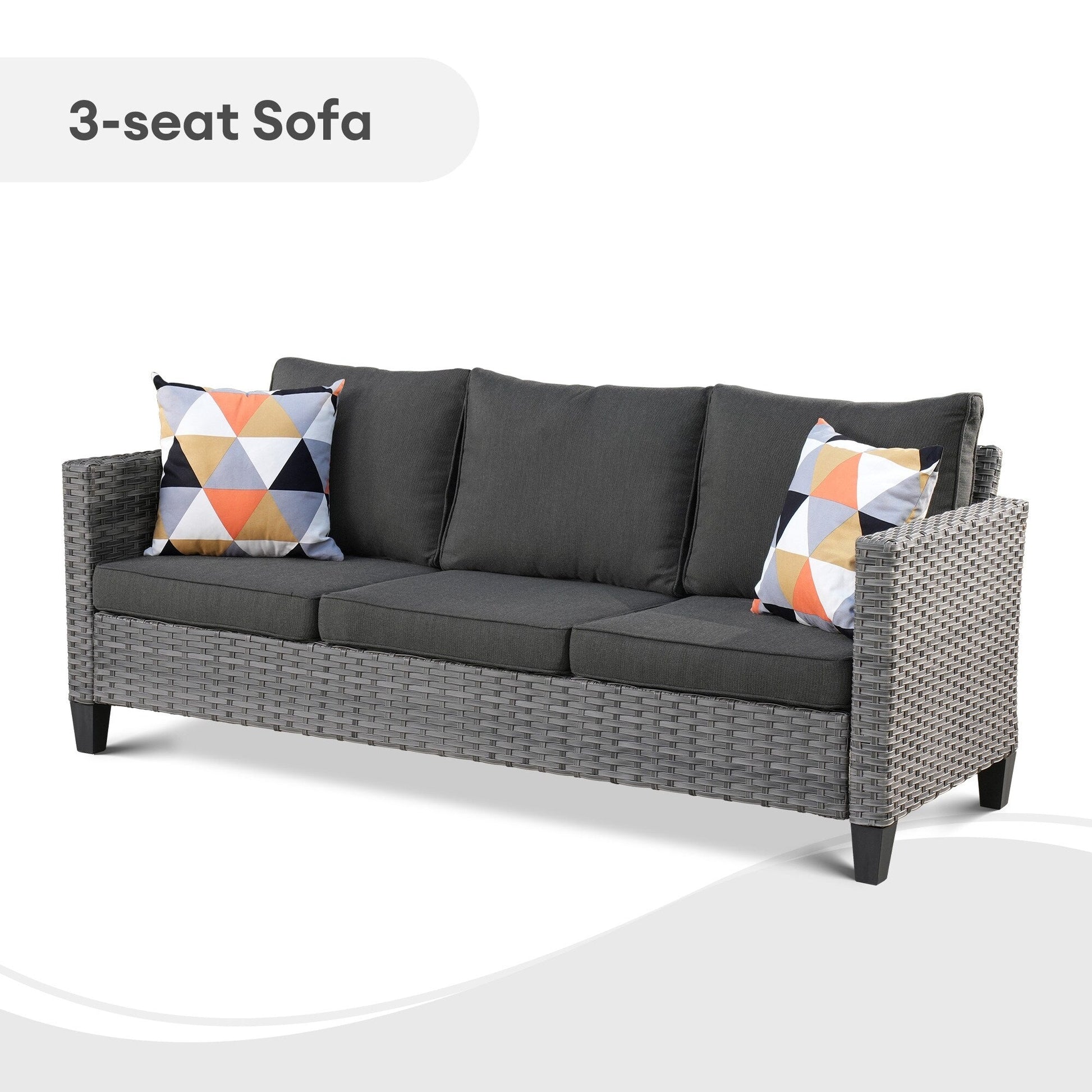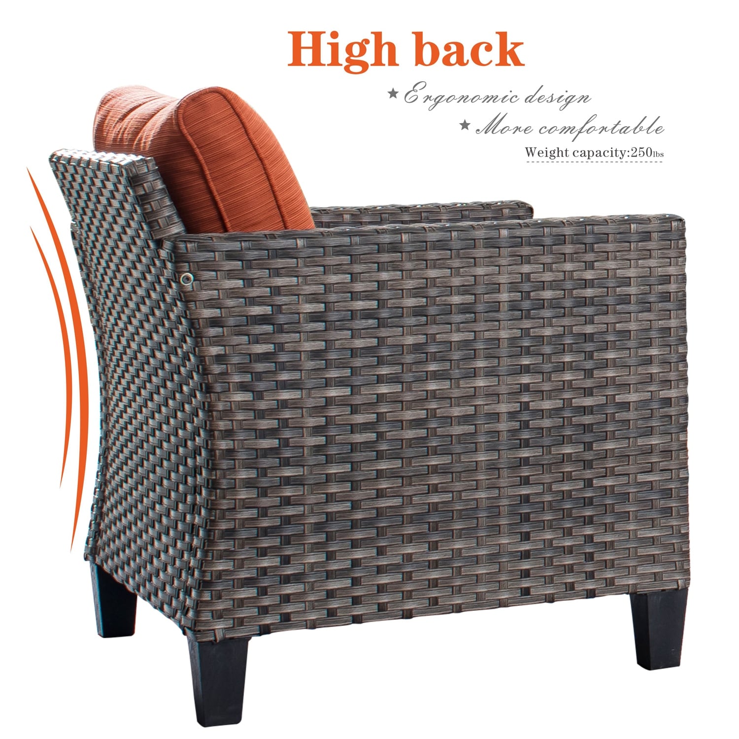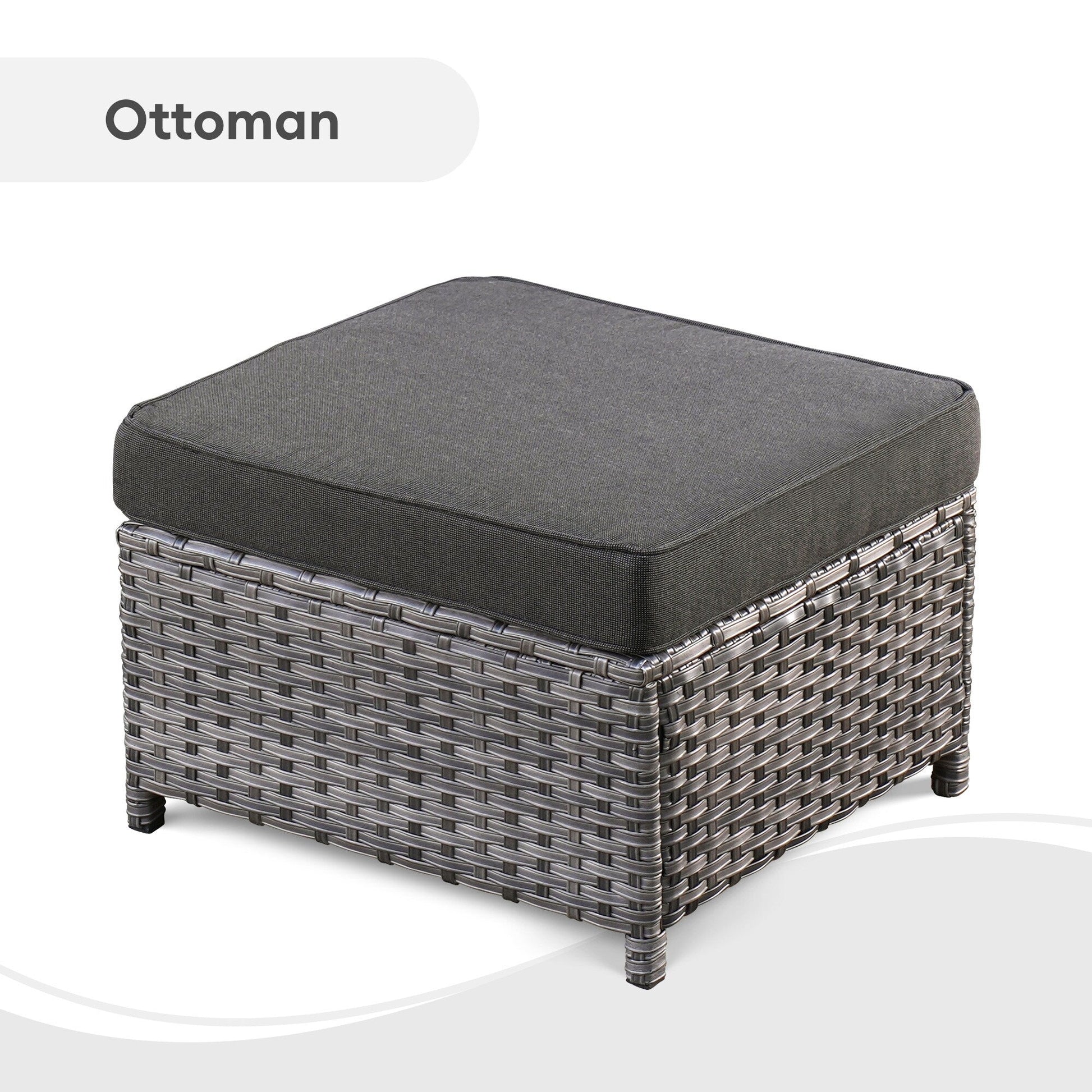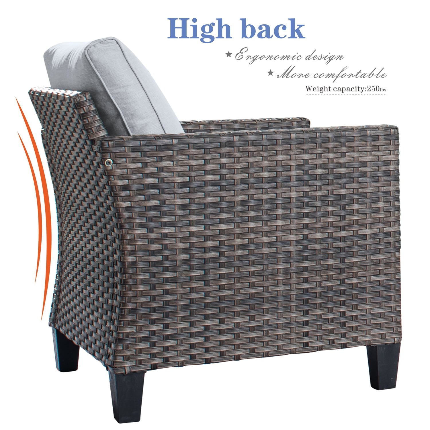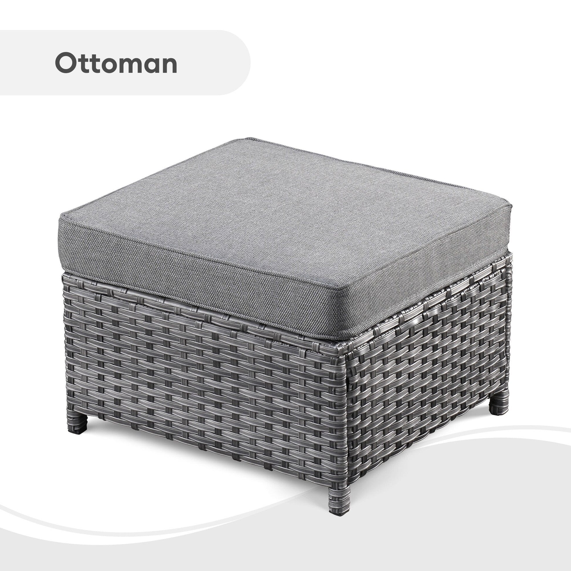 Elevate your outdoor living space with the OVIOS 6-piece Patio Wicker Furniture Loveseat Conversation Set. This stunning ensemble includes two sizes of loveseats, two chairs, and two matching ottomans, perfect for creating a relaxing oasis in your backyard. With handwoven wicker, high-density foam, and polyester construction, this set is both durable and stylish. Enjoy the comfort of spacious armrests and deep seating, with foam-cushioned upholstery that dries quickly and is environmentally friendly. Choose from four cushion color options to add the perfect finishing touch to your patio decor.
