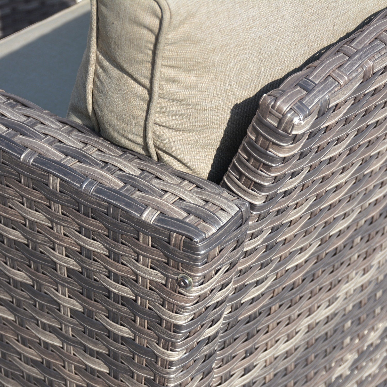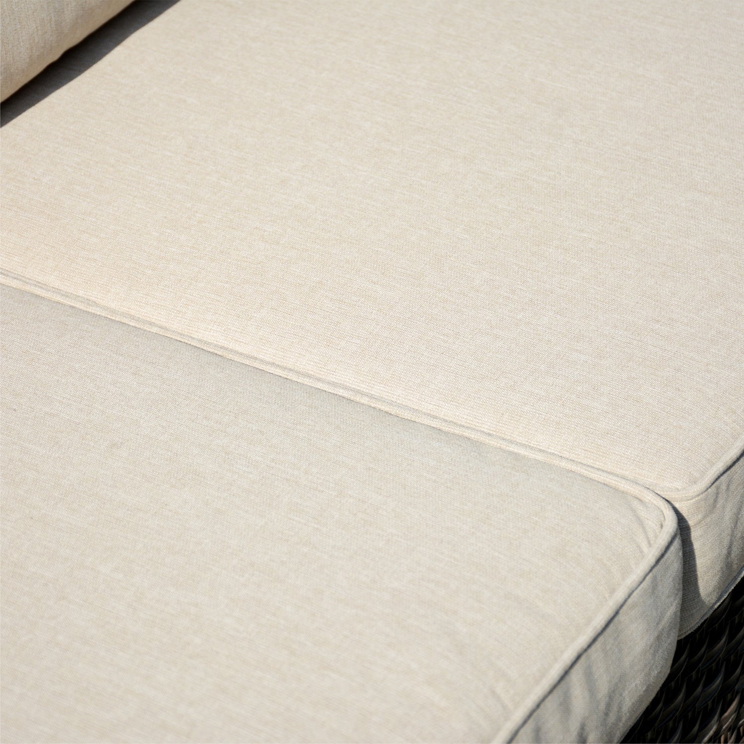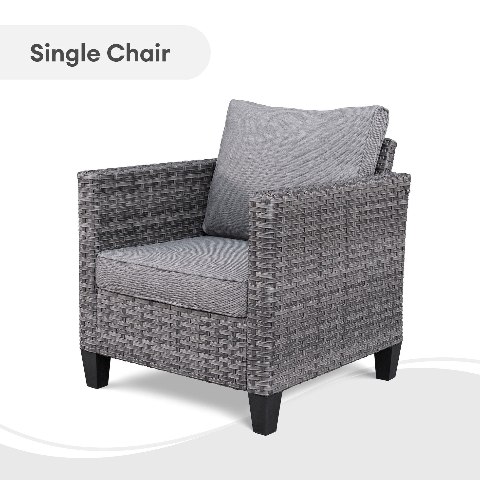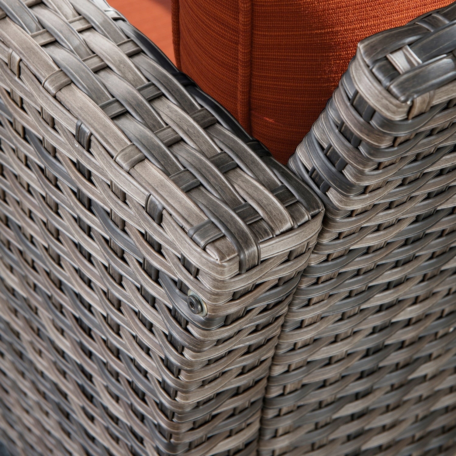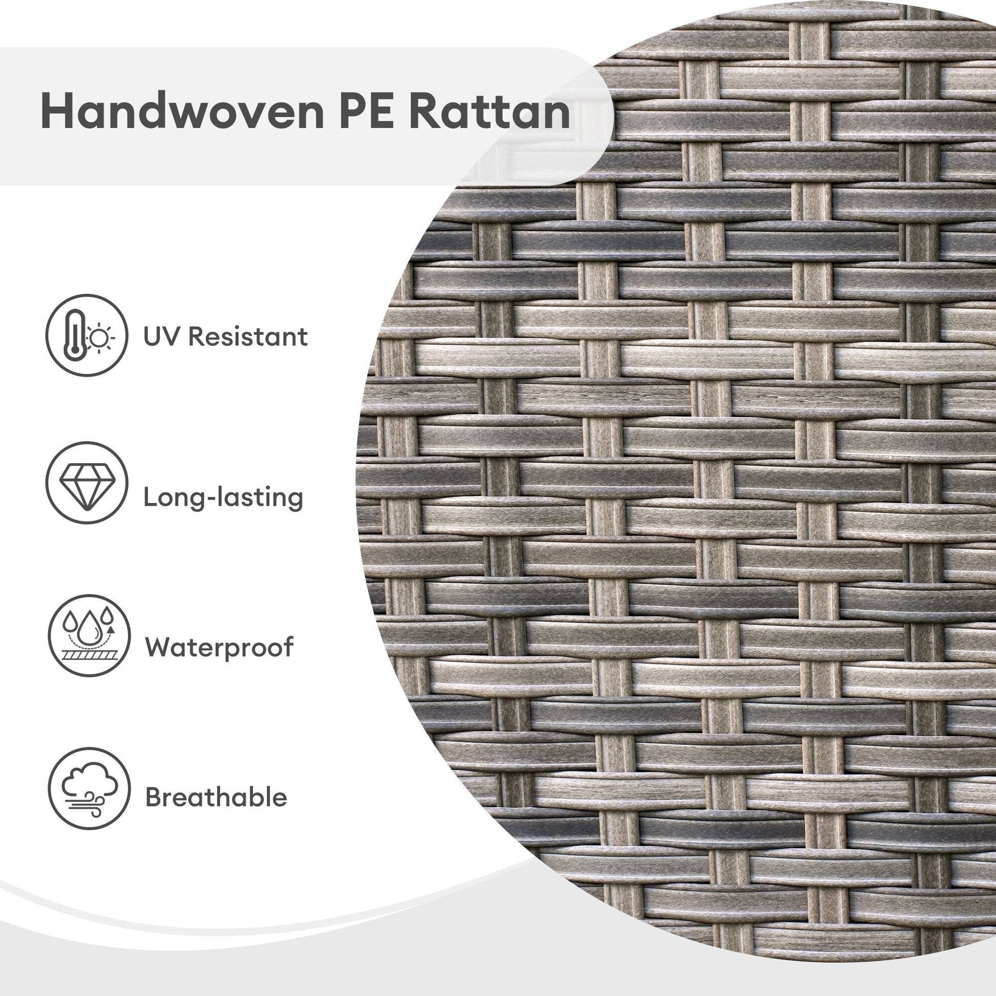 Elevate your outdoor living space with the OVIOS 6-piece Patio Wicker Furniture Loveseat Conversation Set. This stunning ensemble includes two sizes of loveseats, two chairs, and two matching ottomans, perfect for creating a relaxing oasis in your backyard. With handwoven wicker, high-density foam, and polyester construction, this set is both durable and stylish. Enjoy the comfort of spacious armrests and deep seating, with foam-cushioned upholstery that dries quickly and is environmentally friendly. Choose from four cushion color options to add the perfect finishing touch to your patio decor.