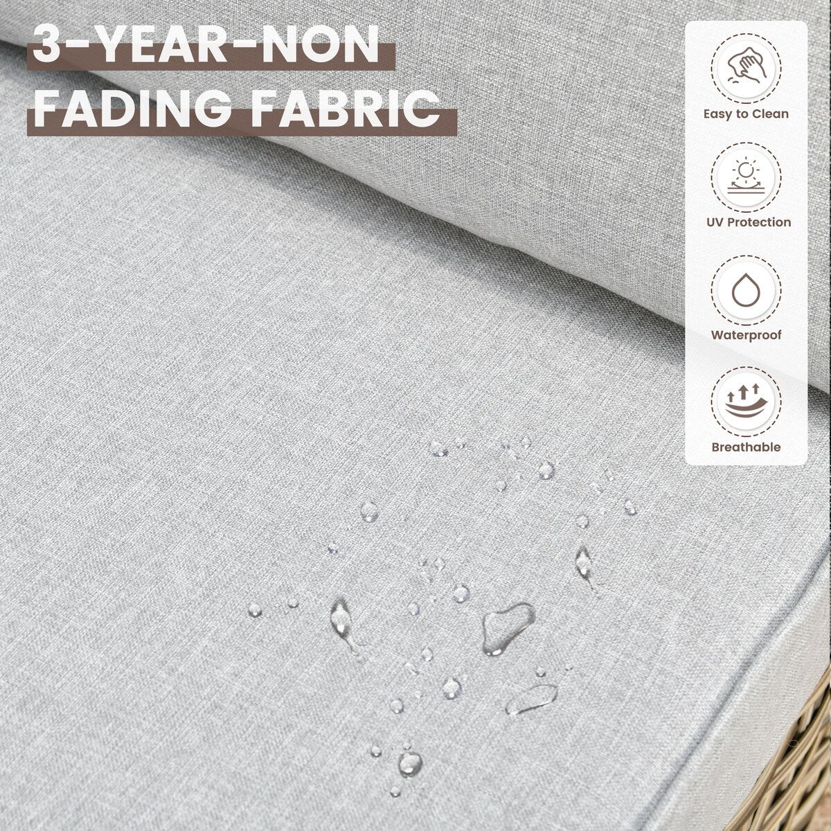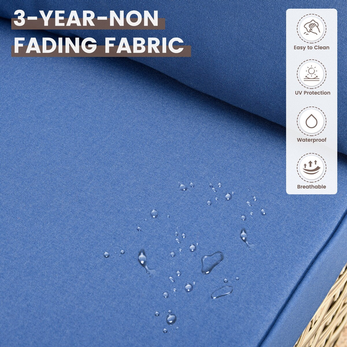 UV-Resistant and Waterproof Cushion Covers: The cushion covers are made from high-quality materials that are UV-resistant, waterproof, and fade-resistant, ensuring they stay vibrant and fresh for a long time.