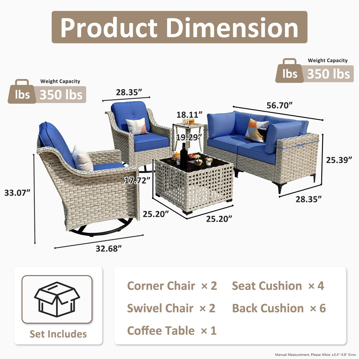 Removable Cushion Covers: All cushion covers are removable for easy cleaning and maintenance, keeping your furniture set looking its best.