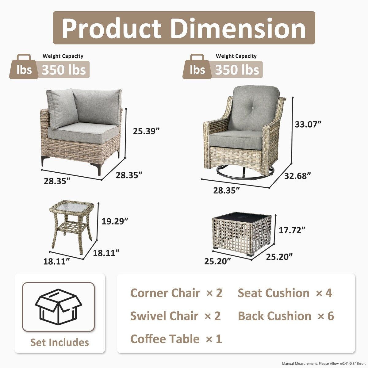 Solid Construction: The sturdy construction ensures the stability and longevity of the furniture, providing you with a reliable and durable outdoor seating solution.
