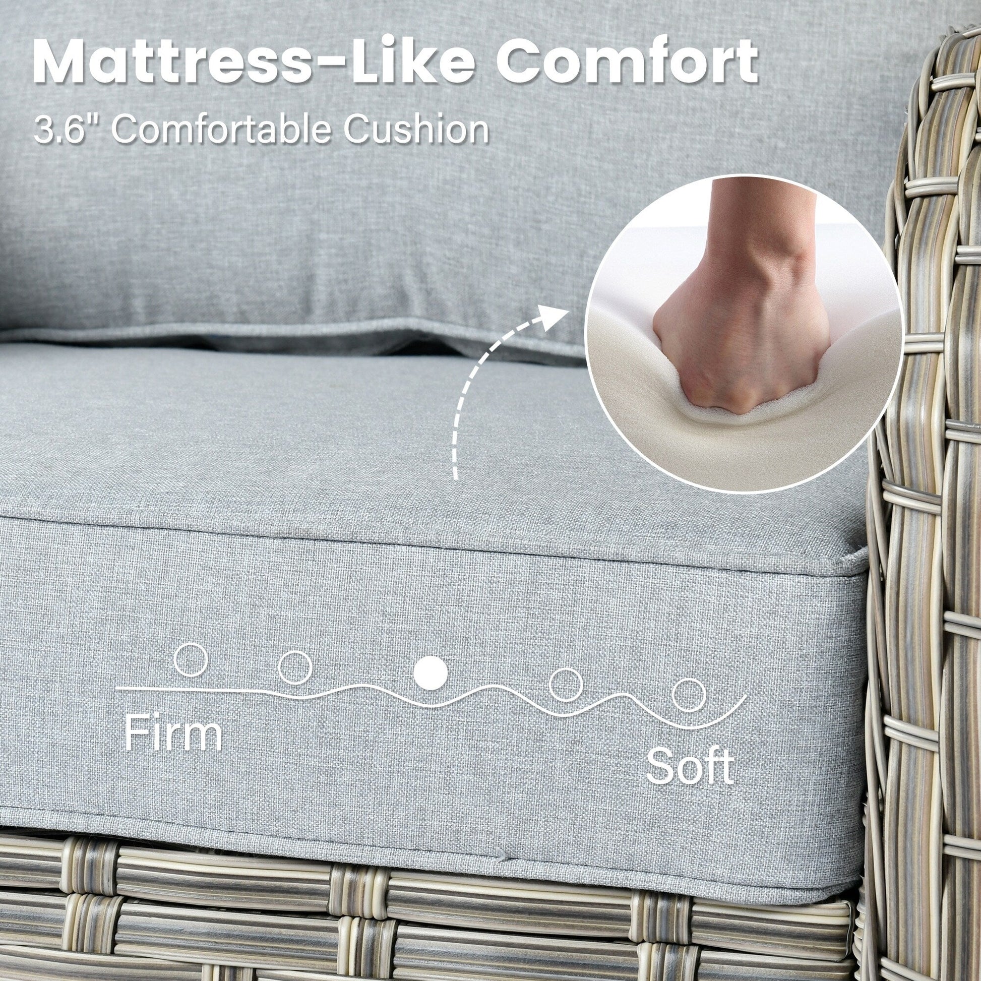 Elevate your outdoor living experience with this Premium Outdoor Wicker Furniture Set, now including a stylish Rattan Fire Pit, designed to combine style, comfort, and functionality. Perfect for family gatherings, outdoor parties, or quiet personal relaxation, this furniture set will provide the ideal setting for any occasion.