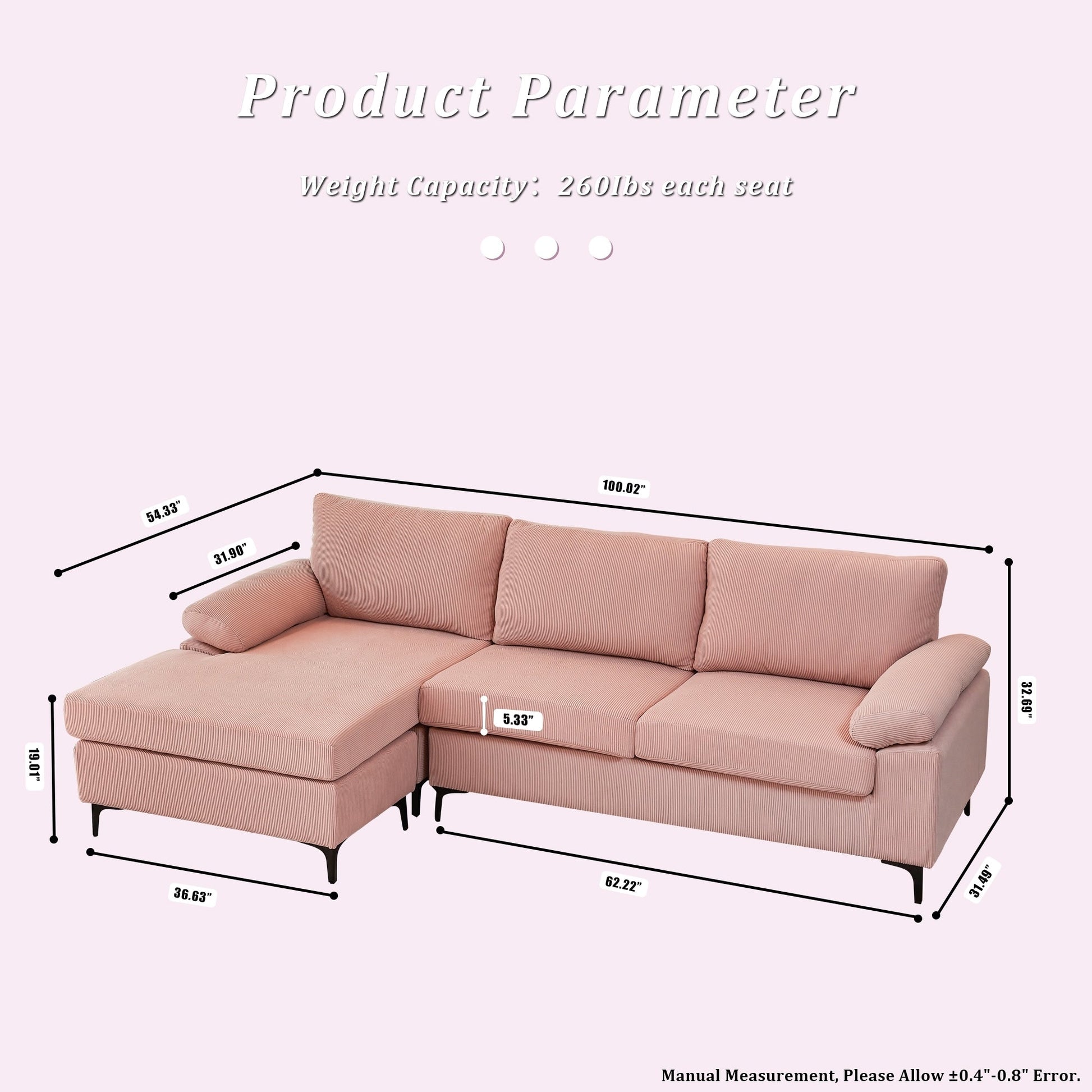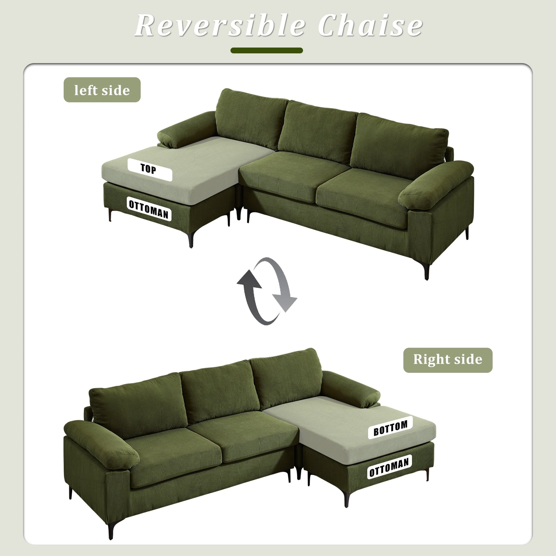 OVIOS Reversible Chaise Sofa With Fluffy Cushions Metal Legs