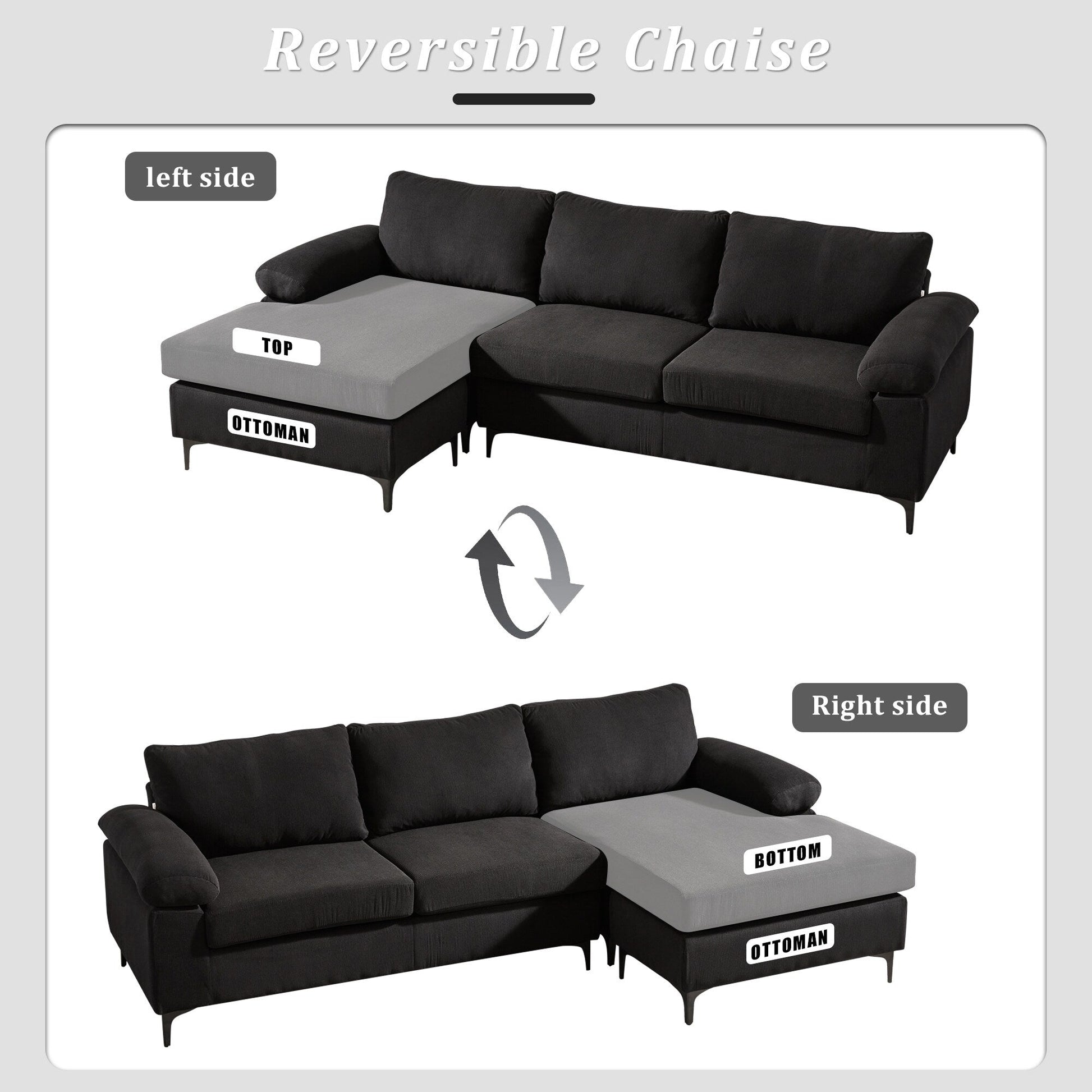 OVIOS Reversible Chaise Sofa With Fluffy...