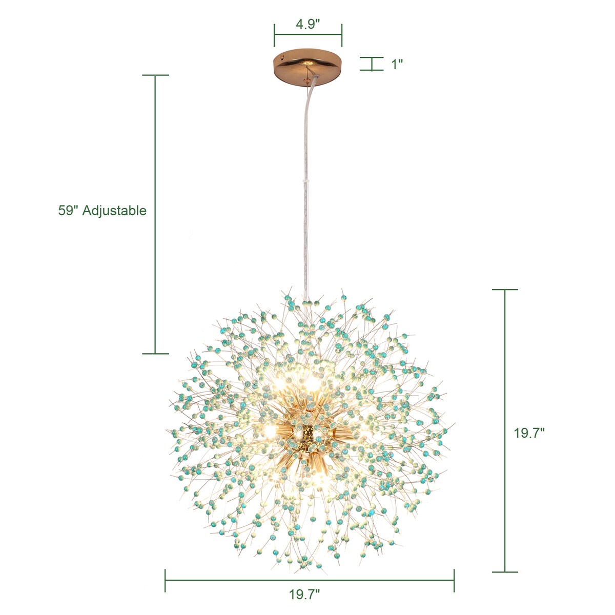 Height Adjustable: the total hanging cord length is 59 inches. Adjustable cord allows you to customize the height of the crystal pendant/ chandelier, and you can install it on sloped ceilings