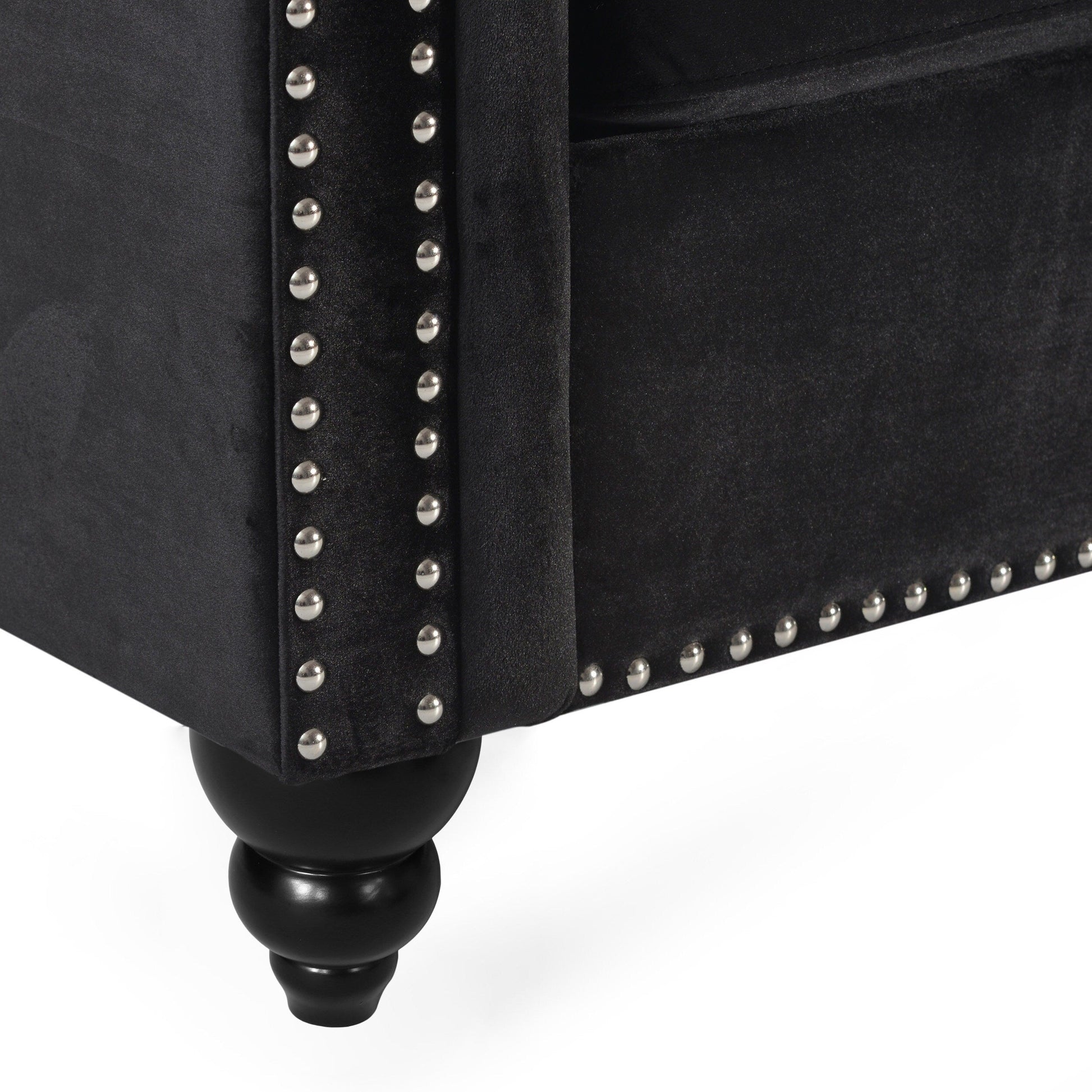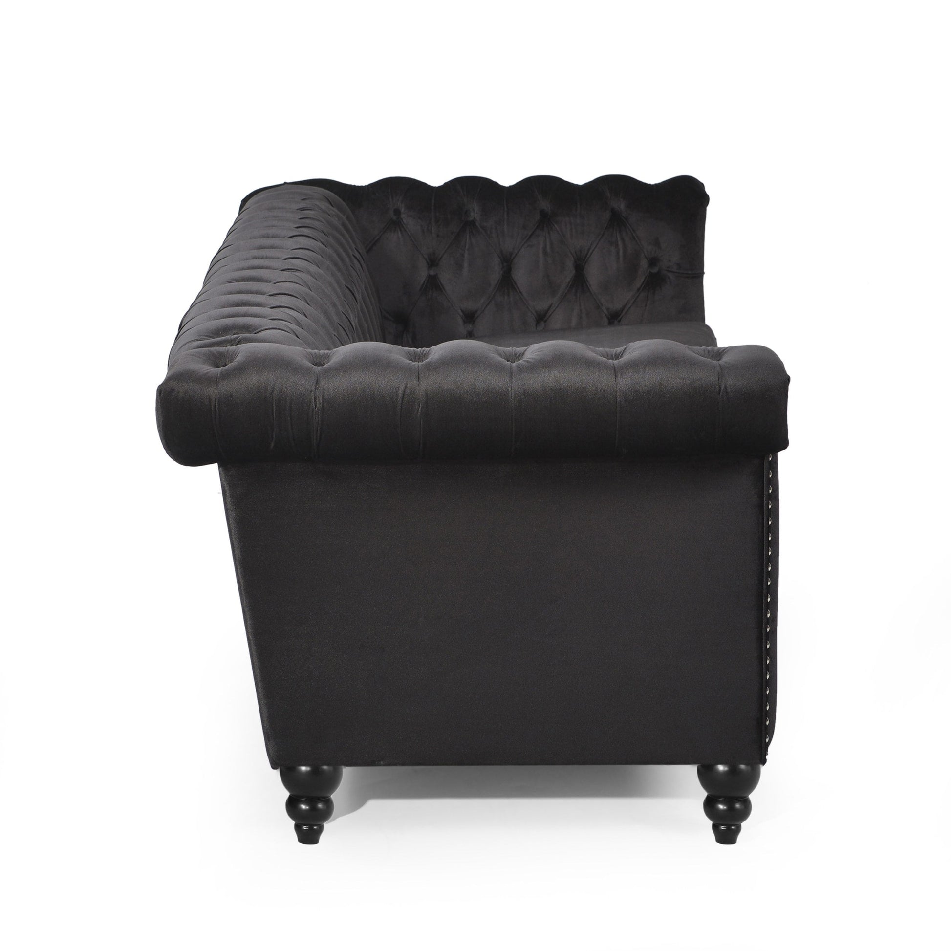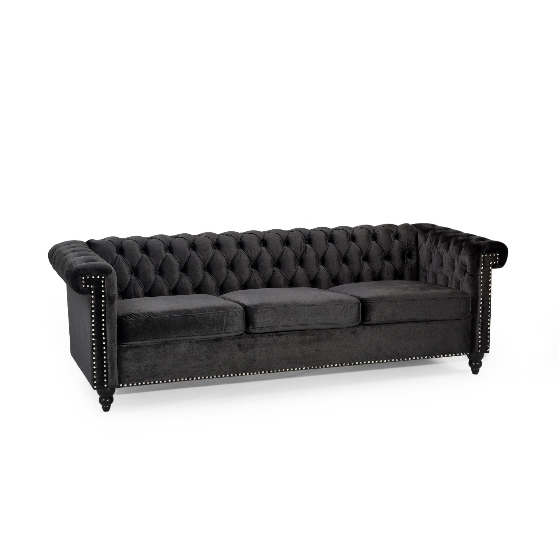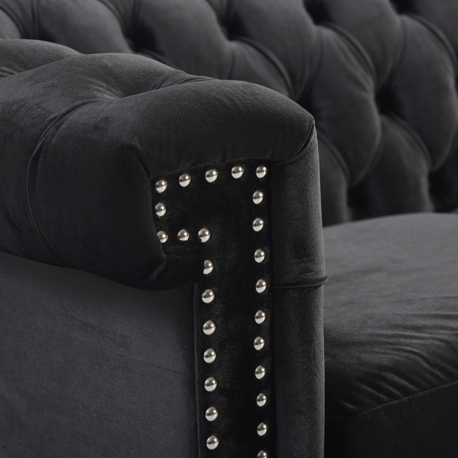 Traditional Chesterfield style with button-tufted backrest and armrests