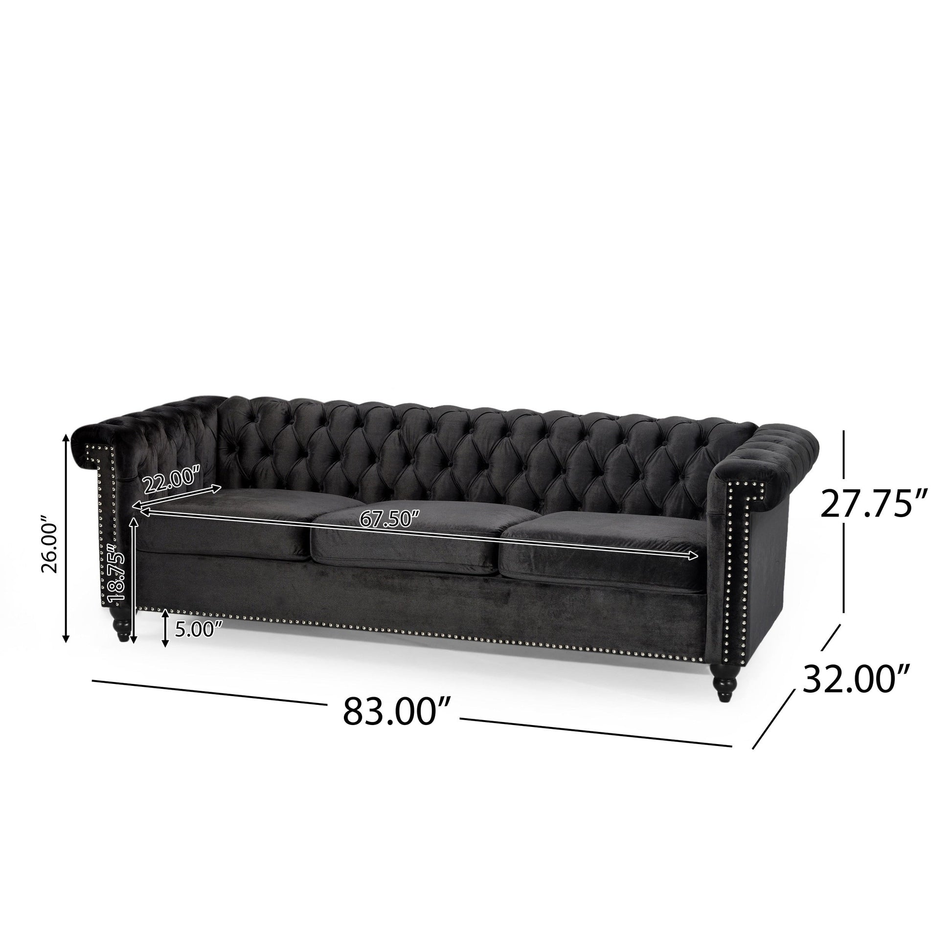 Seat: 17.75 inches high x 67.75 inches wide x 22.5 inches deep