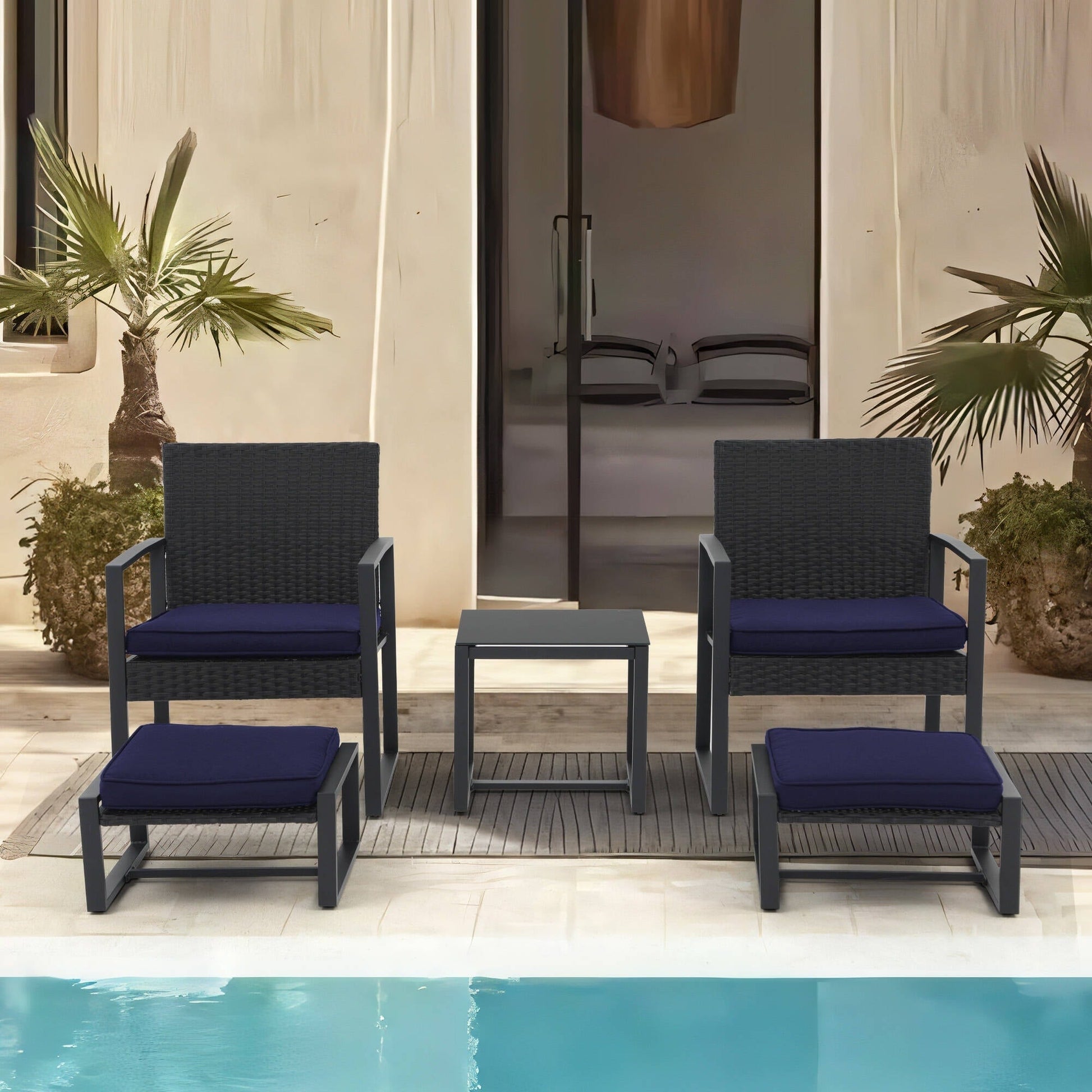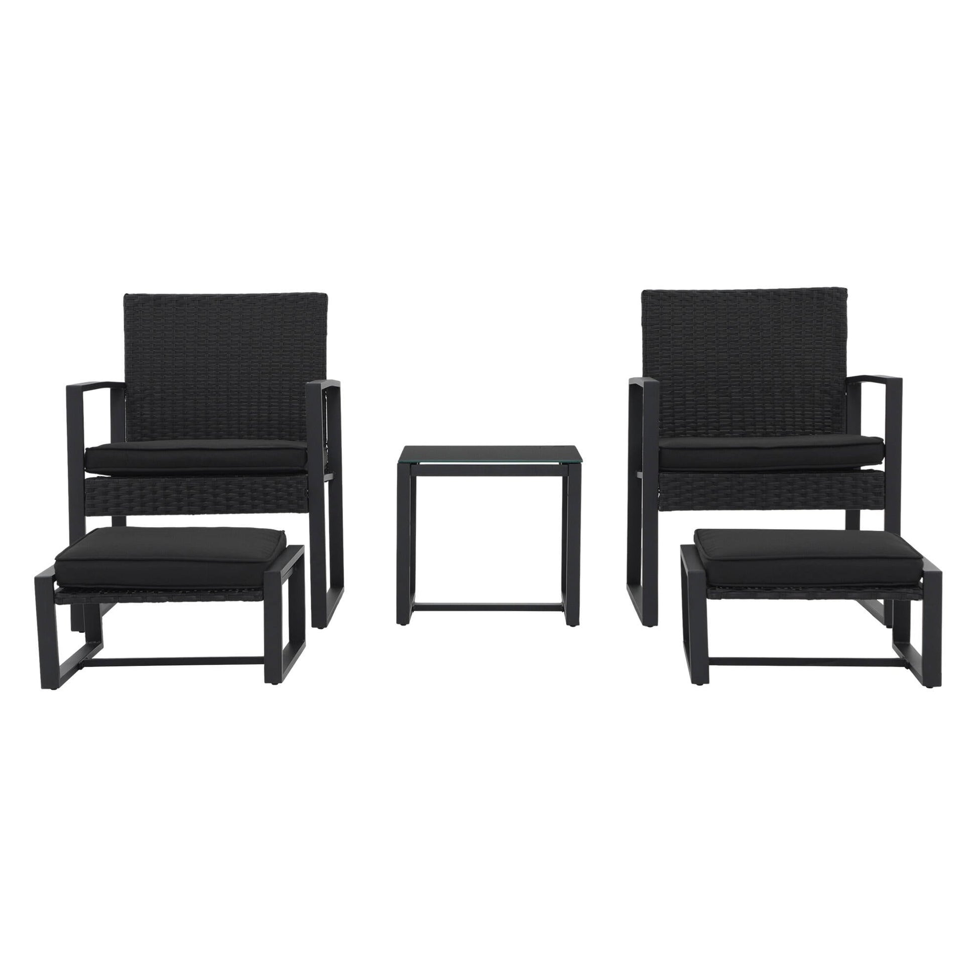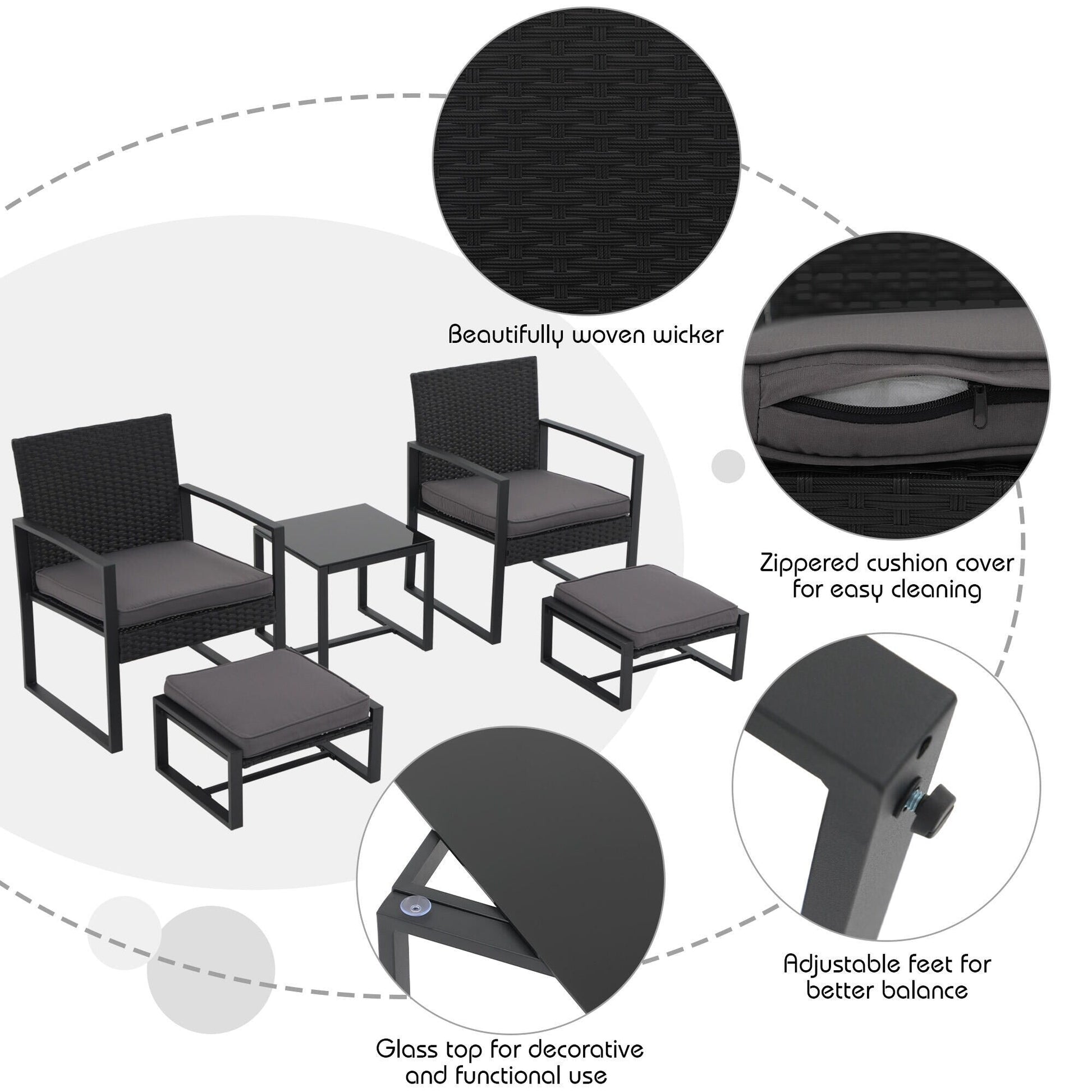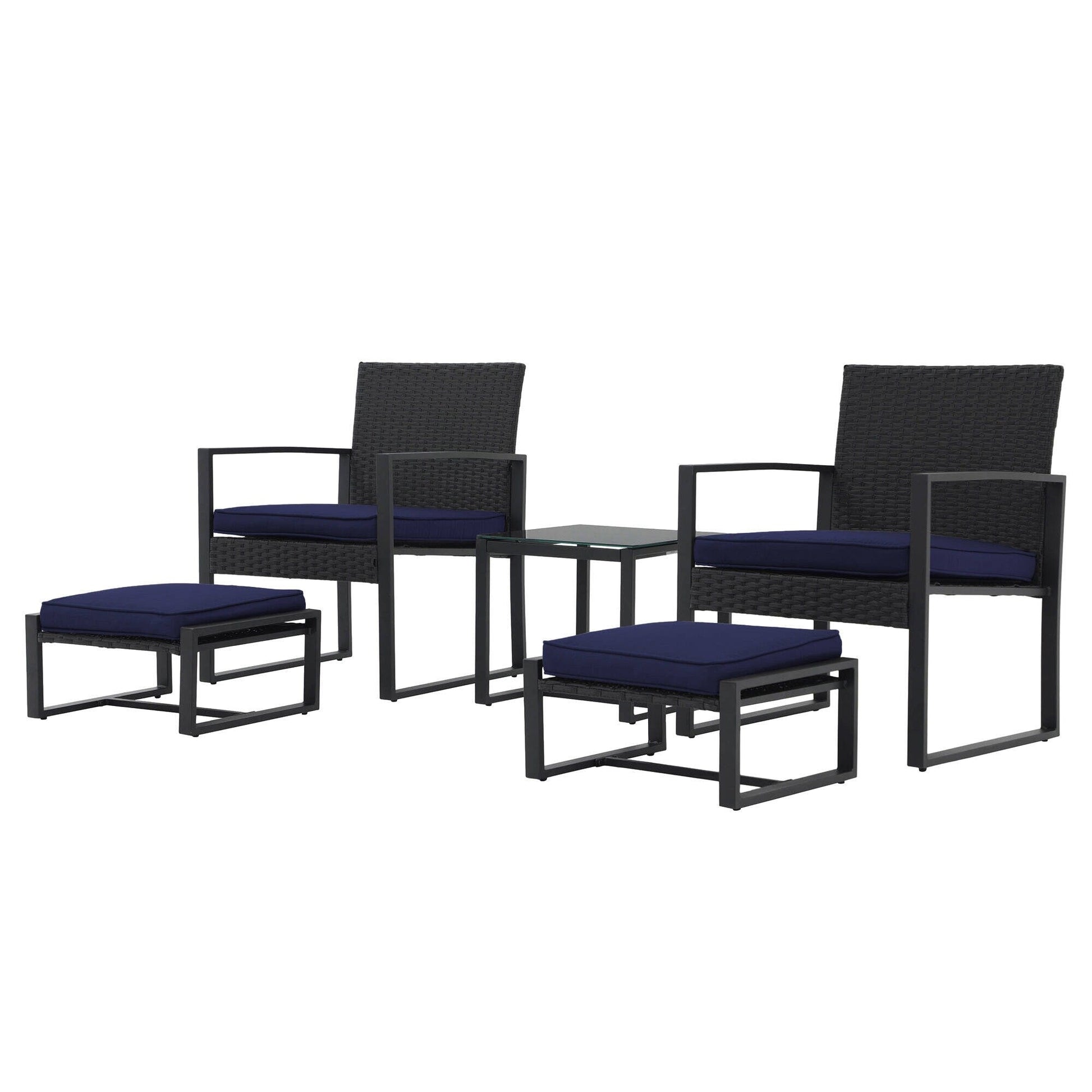 Complete your outdoor area with this 5 pieces wicker conversation set. The chairs and ottomans are constructed from the high quality wicker and solid steel frame, ensuring trusted stability and durability for years to come. Topped with thick padded cushions, our patio chair set is designed to provide the ultimate relaxation while relishing the outdoors. Enjoy the warm breeze and spend quality leisure time with your significant other at the poolside or front porch!?