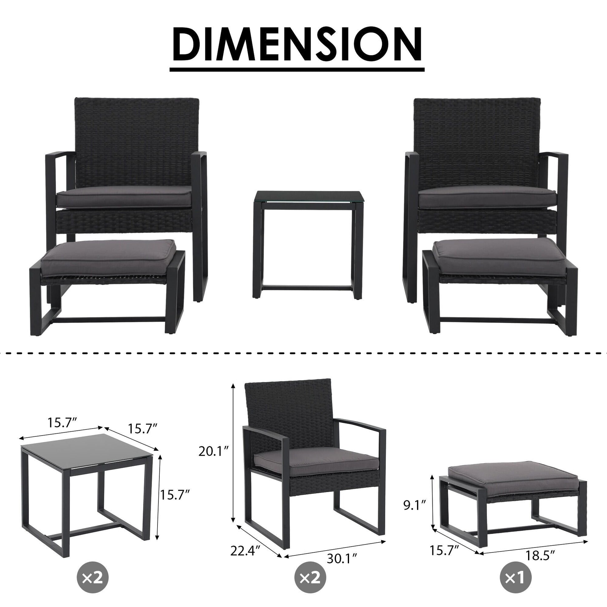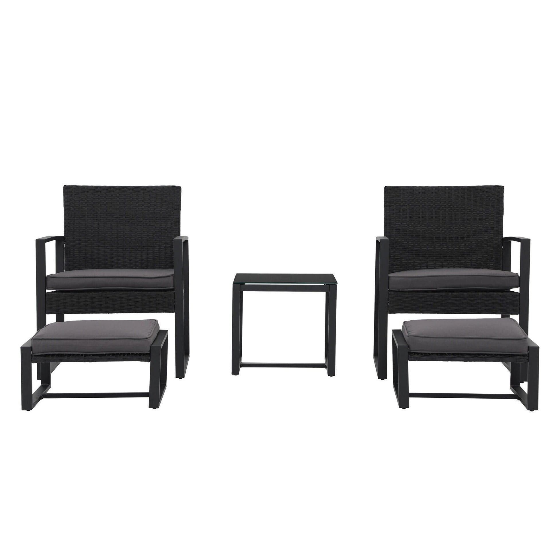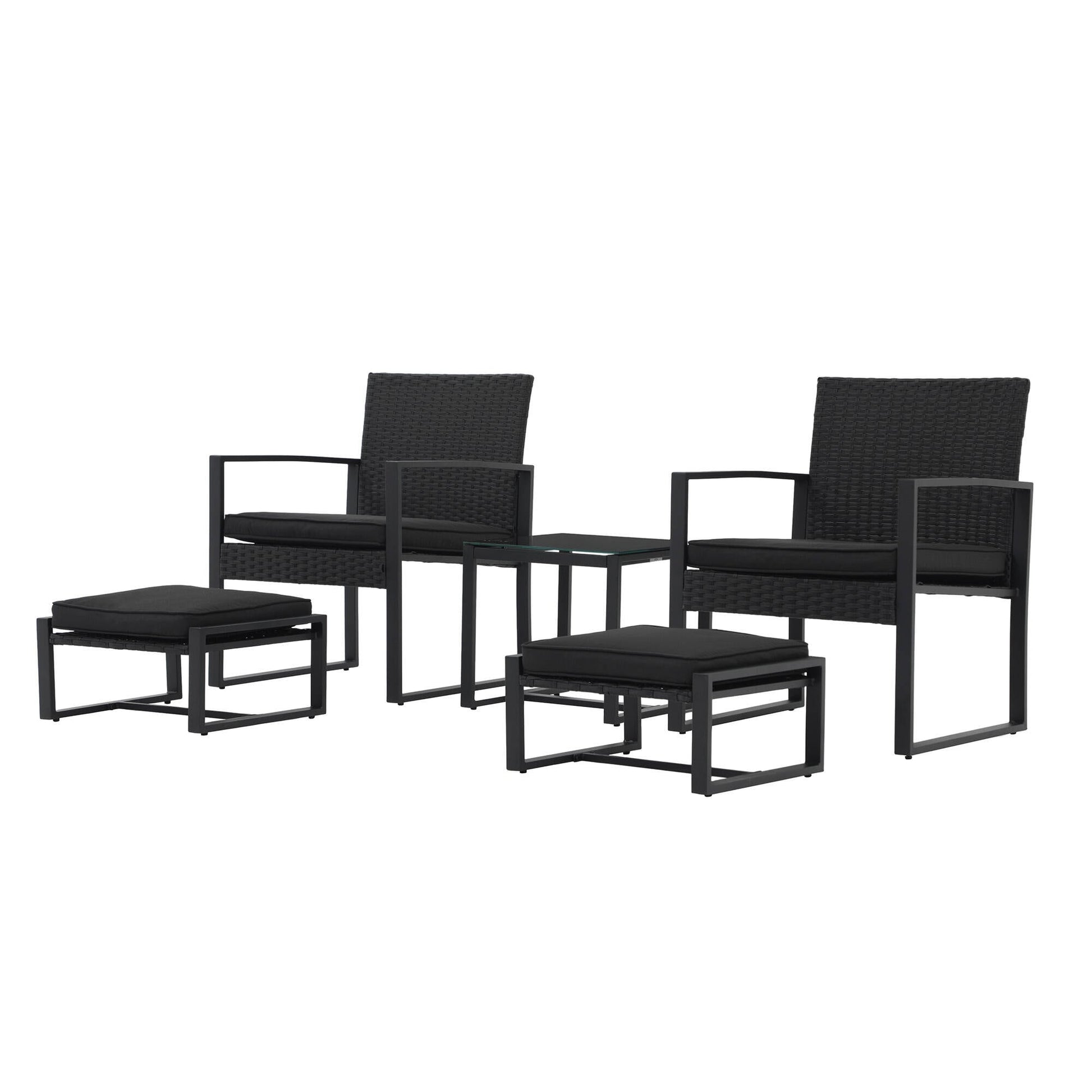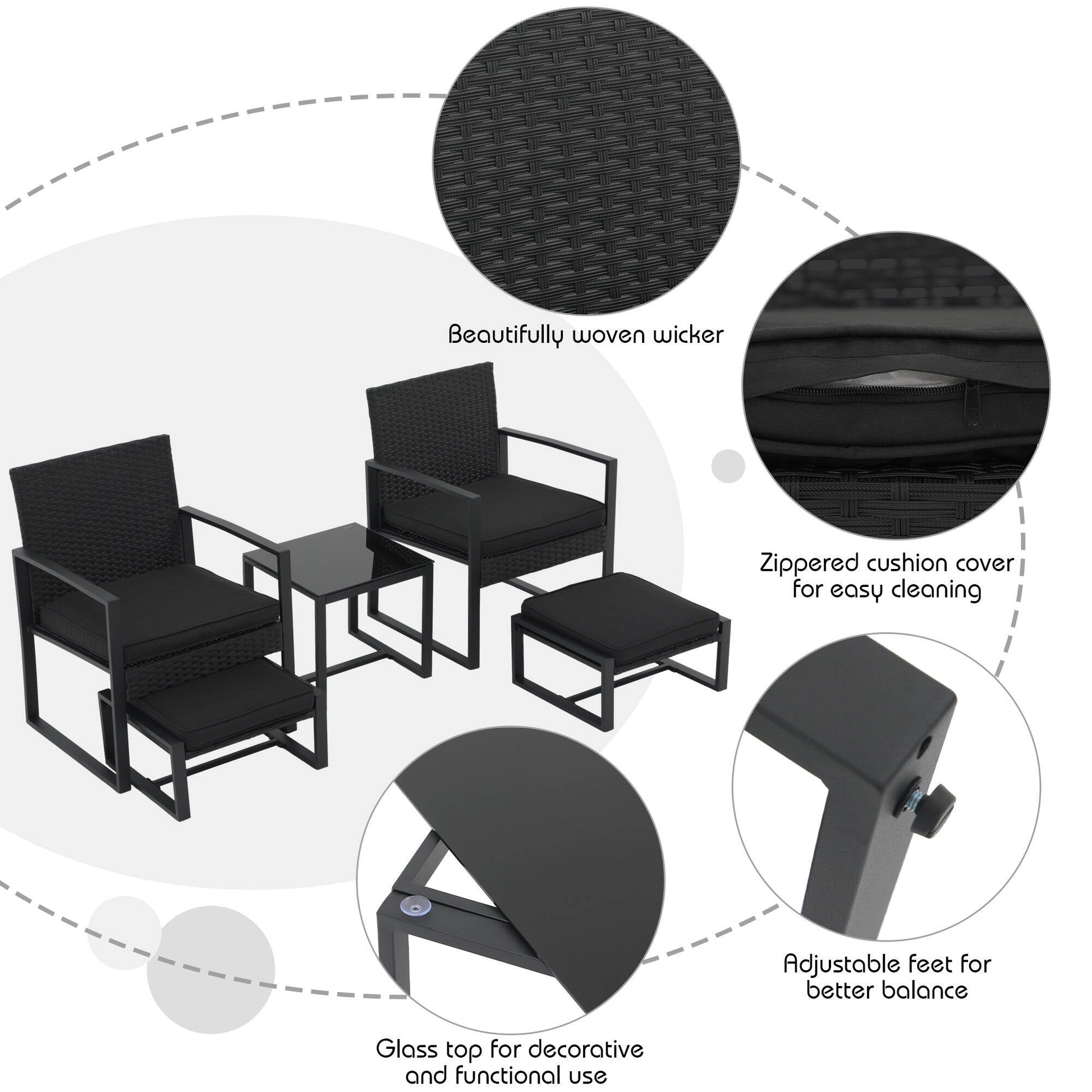 Complete your outdoor area with this 5 pieces wicker conversation set. The chairs and ottomans are constructed from the high quality wicker and solid steel frame, ensuring trusted stability and durability for years to come. Topped with thick padded cushions, our patio chair set is designed to provide the ultimate relaxation while relishing the outdoors. Enjoy the warm breeze and spend quality leisure time with your significant other at the poolside or front porch!?