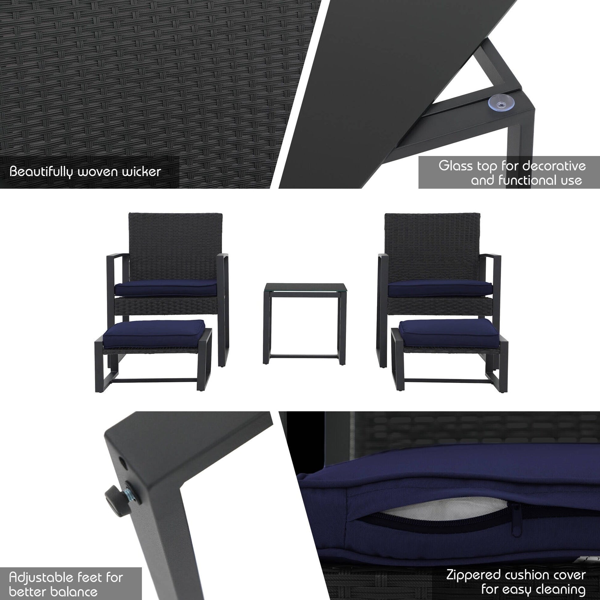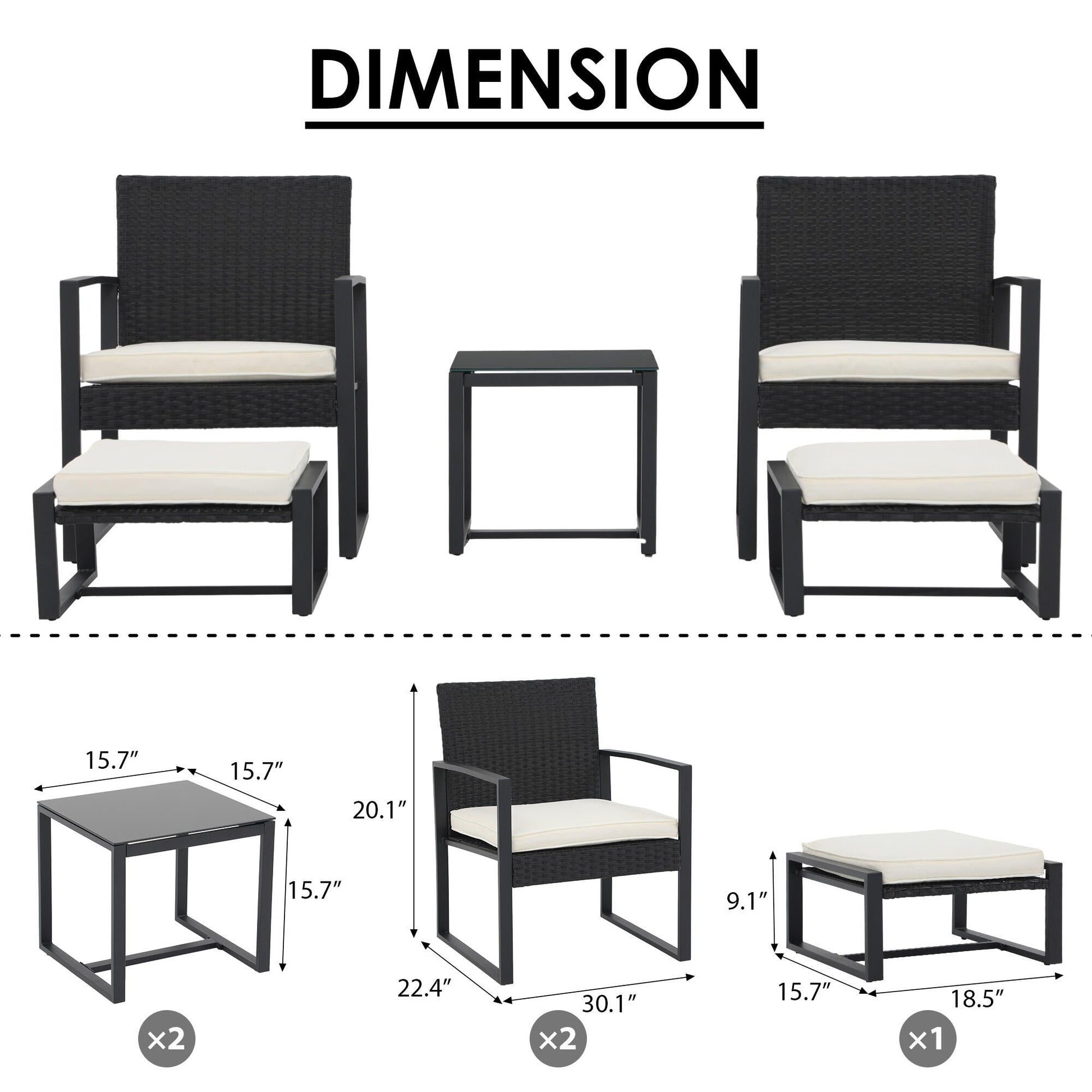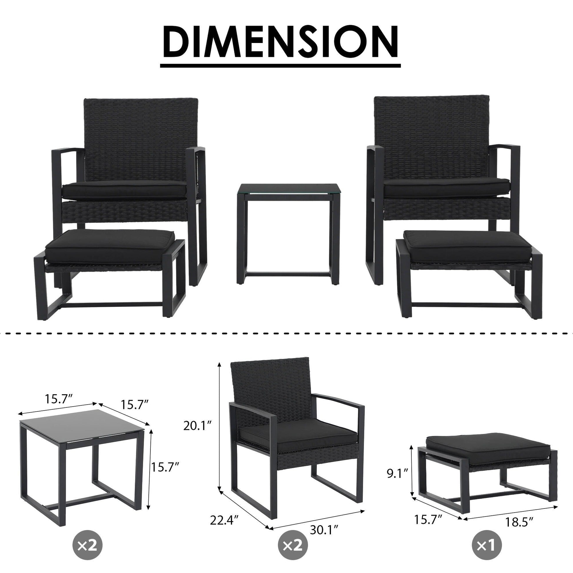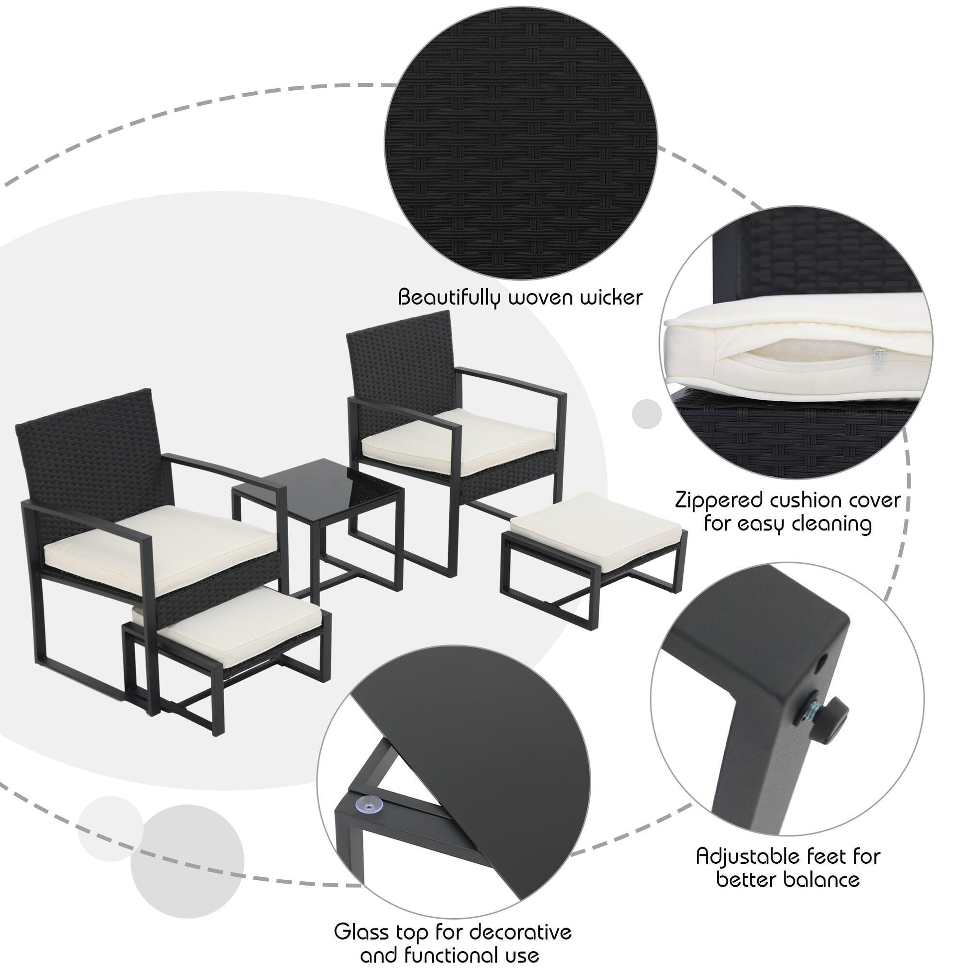 Complete your outdoor area with this 5 pieces wicker conversation set. The chairs and ottomans are constructed from the high quality wicker and solid steel frame, ensuring trusted stability and durability for years to come. Topped with thick padded cushions, our patio chair set is designed to provide the ultimate relaxation while relishing the outdoors. Enjoy the warm breeze and spend quality leisure time with your significant other at the poolside or front porch!?