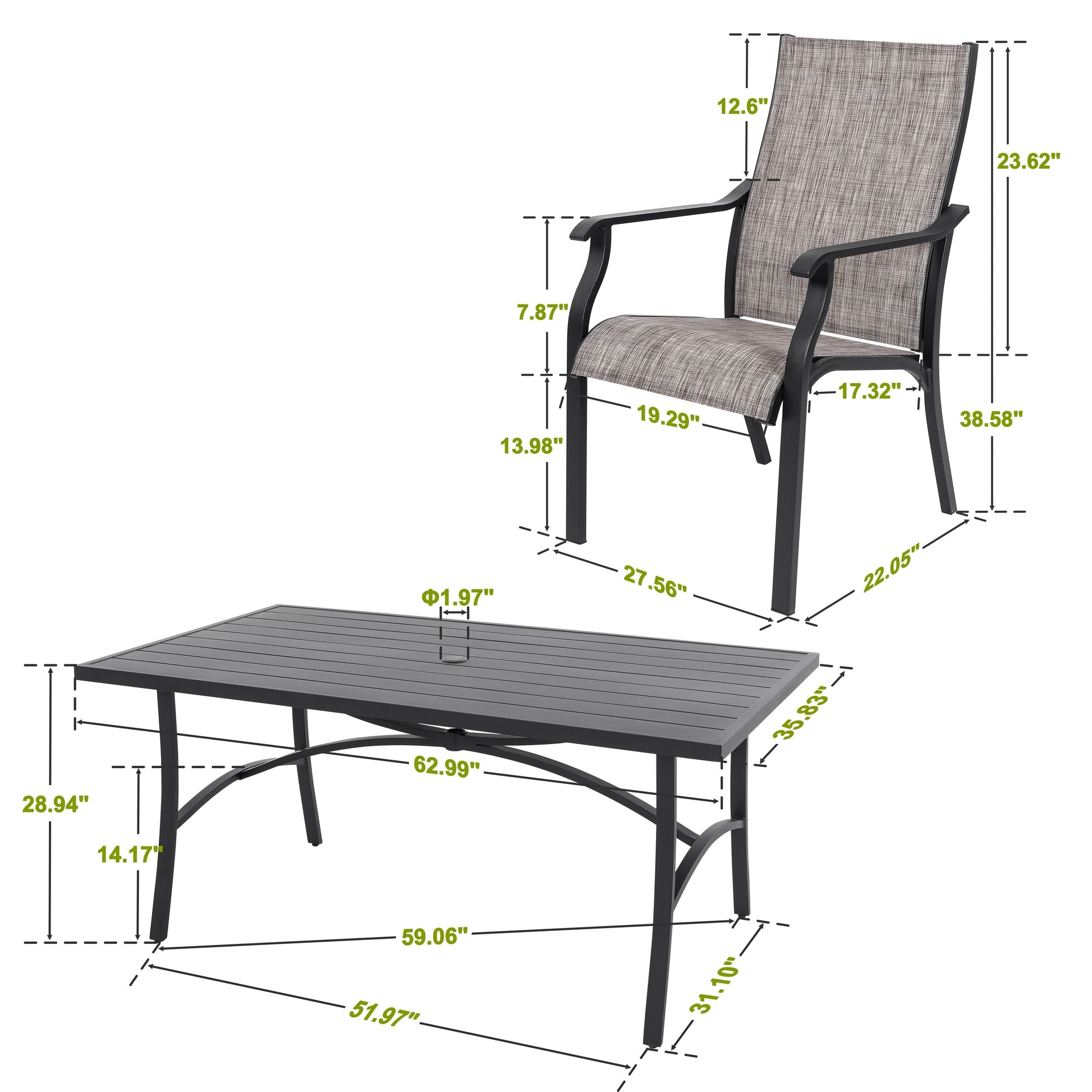 Unleash the magic of outdoor dining with this Nuu Garden Patio 7-Piece Dining Set, igniting a revolution in alfresco elegance and comfort. The table, crafted from durable aluminum, features a slatted tabletop design for efficient drainage, while its curved frame offers ample legroom for added comfort. Accompanying this, the chairs boast textilene fabric, ensuring both breathability and water resistance, making them ideal for various weather conditions. Refresh your outdoor experience with this set, where every detail, from the innovative design of the table to the comfort of the chairs, is tailored to enhance your alfresco moments.