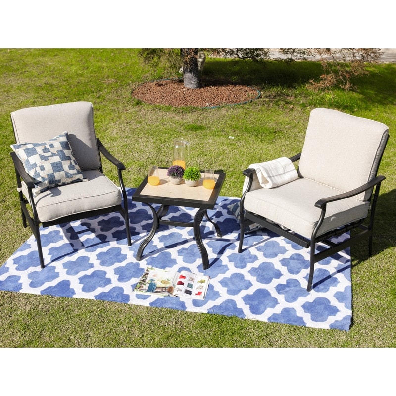Crafted of iron frame with powder-coated finish, plus with both back and seat cushion, the chairs will serve you simple comfort.?