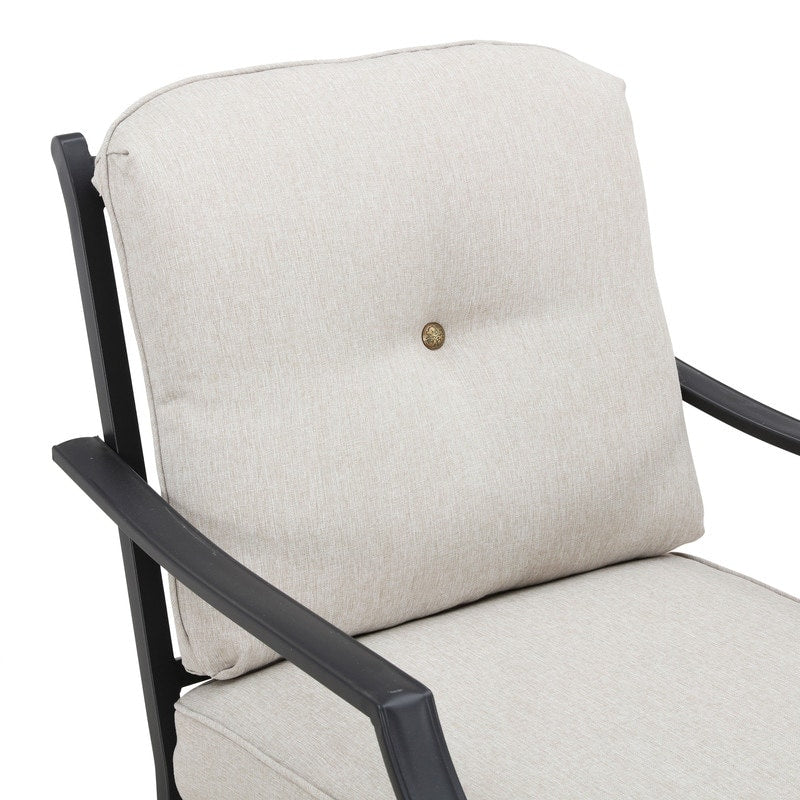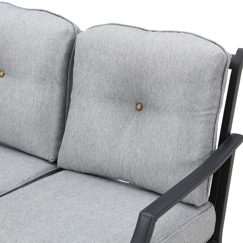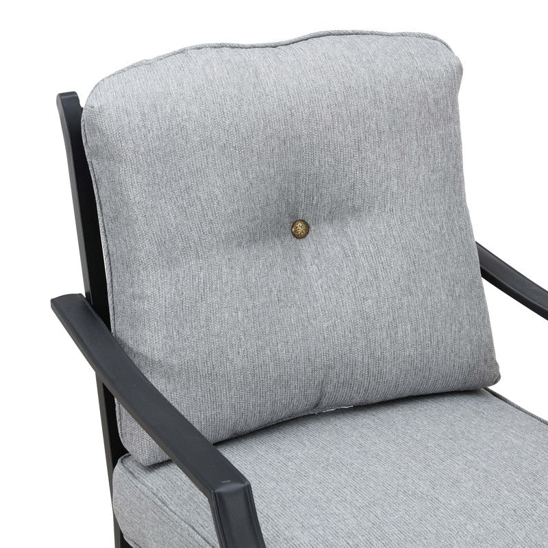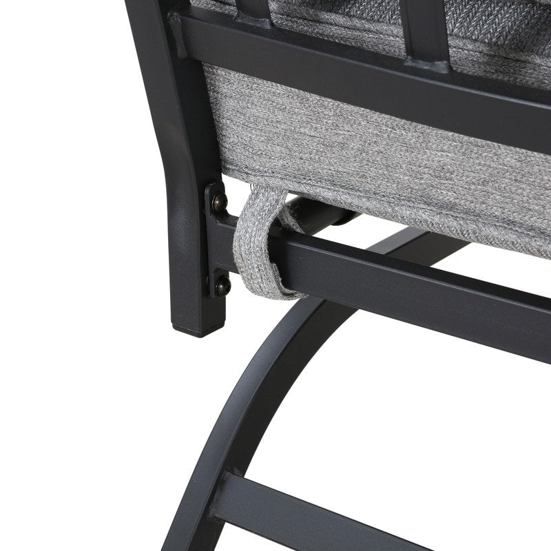 Elevate your outdoor space with the luxurious Patio Festival 4-Piece Outdoor Metal Sofa Seating Group. This set features a durable black powder-coated steel frame and UV-resistant Olefin fabric cushions, ensuring long-lasting quality and comfort. The complete furniture set includes a three-seater sofa, two armrest rocking chairs, and a slatted coffee table that adds a touch of elegance to your outdoor living area. Perfect for relaxing and entertaining, this set is a convenient and cost-effective choice for any outdoor enthusiast.