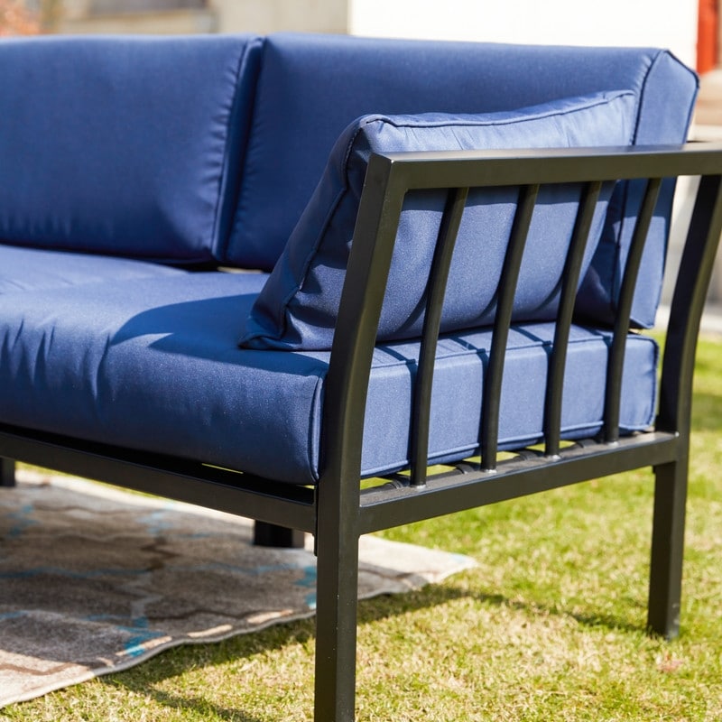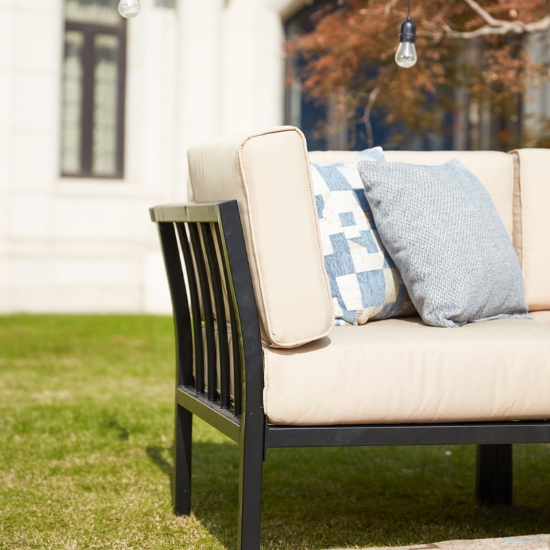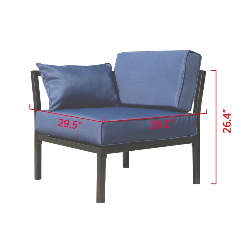 This outdoor sectional sofa set is comfortable and exceptionally stunning for outdoor lounging. Its constructed with a metal frame and coated with powder finish, preventing rust corrosion and chipping. And this set includes a corner chair, a non-armrest chair and an ottoman. Modular design enables you to re-group several sets to suit your patio.