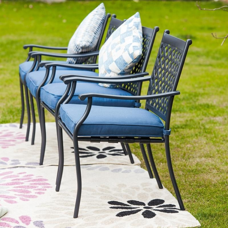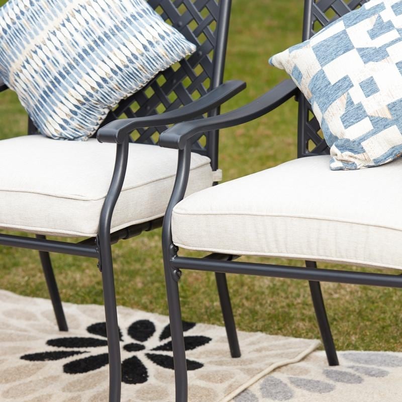 Set includes 1 round dining table and 4 dining chairs with seat cushions