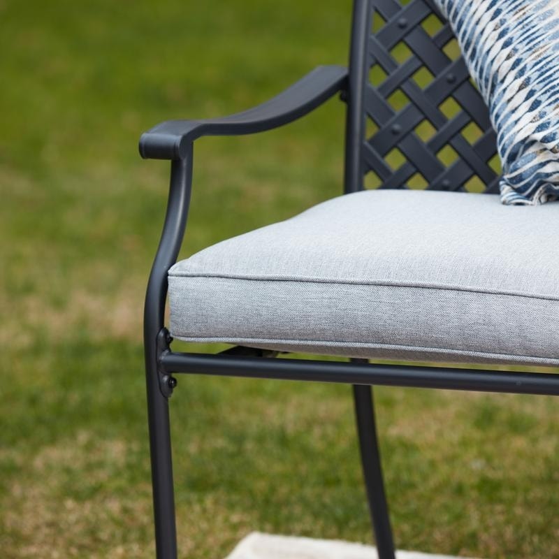 UV-resistant Olefin cushion cover available in grey, beige, or blue
