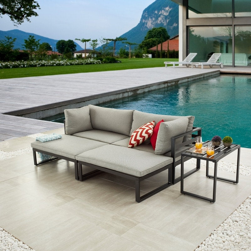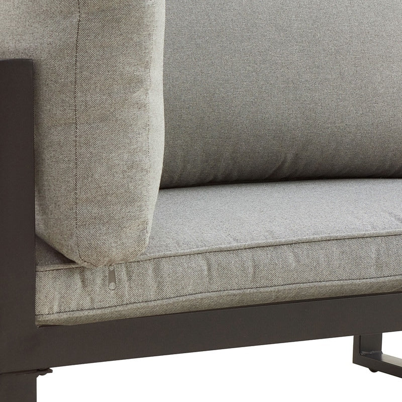 This set includes 2 armrest chairs, 2 ottoman and a side table, with durable powder-coated steel frames and olefin fabrics seats. Grey seat cushions with polyester filled gives you a comfortable sitting. Chairs are deep seating with thick and soft cushions. You can enjoy your leisure time by sitting the chairs in the garden and yard. The set is water resistant. Metal frames are easy to clean and scratch resistnt.