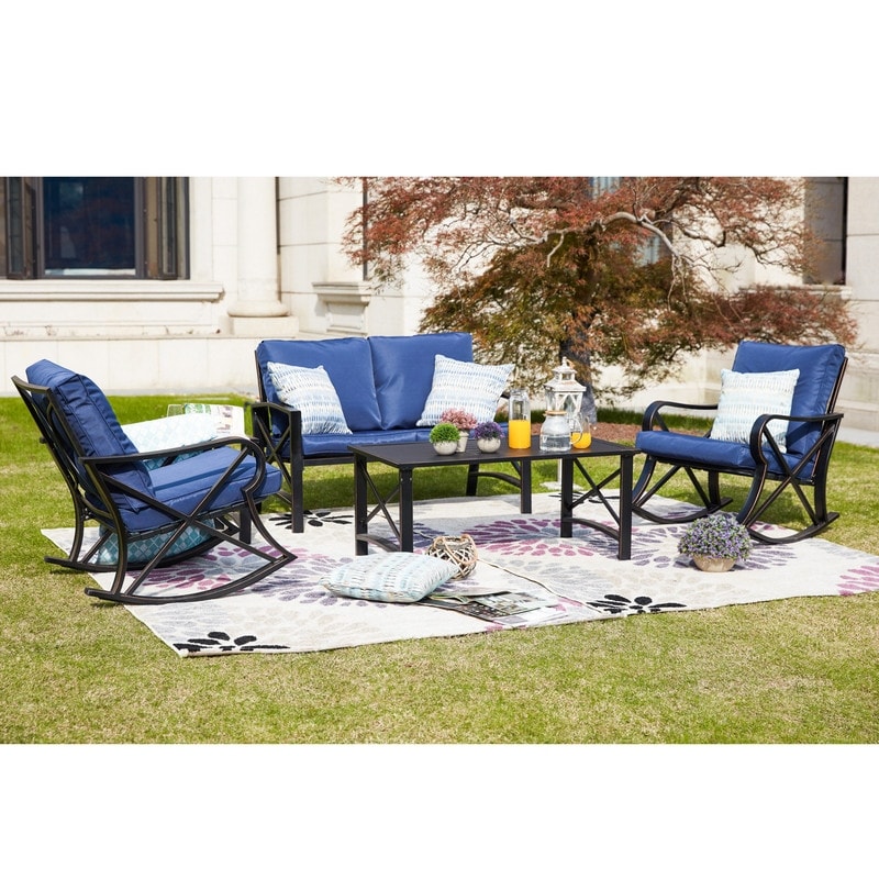 Upgrade your outdoor relaxation experience with the modern and stylish 5-piece conversation set from Patio Festival. This set has been constructed with ultra-durable powder-coated steel frames and is available in multiple color options. The comfortable rocking chairs and loveseat come with plush cushions, and the coffee table and side table provide ample surface space for beverages and snacks. Enjoy outdoor conversations with this weather-resistant set designed to last for years to come.