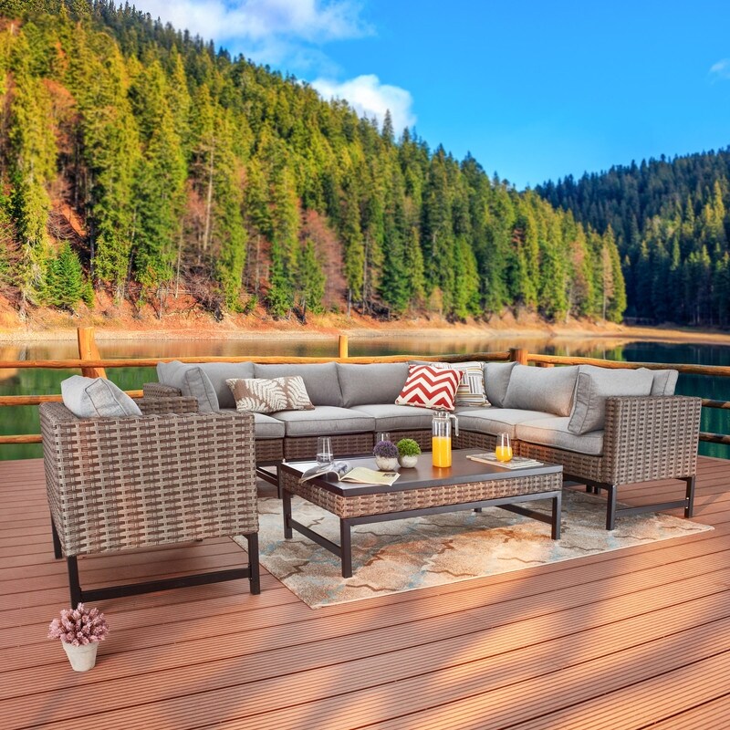 This fashion-forward outdoor conversation set boasts durability and style with its mixed materials look. This set features thick seat and back cushions for comfort and a lipped top on the coffee table to keep items in place. The zippered cushion covers are removable for easy cleaning.
