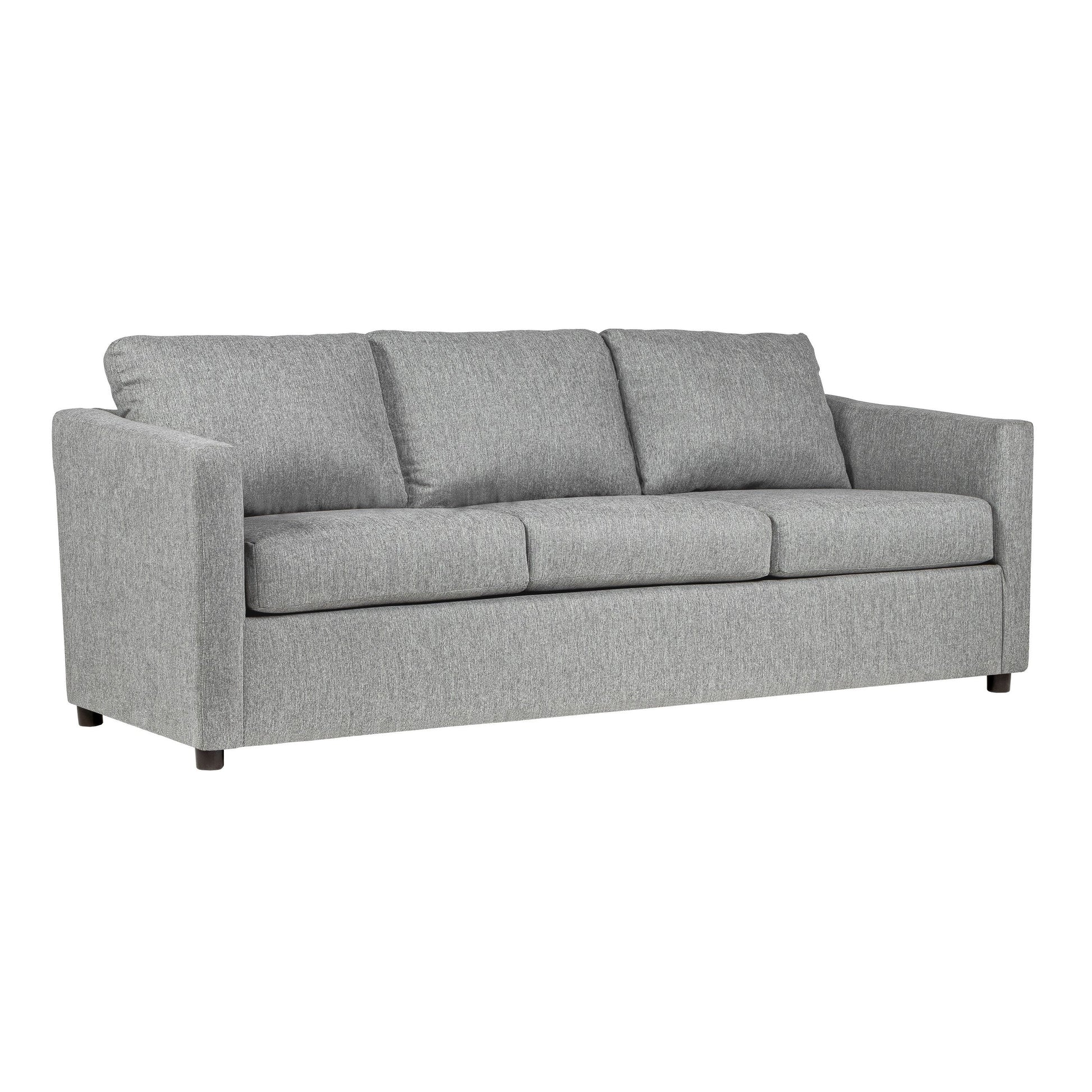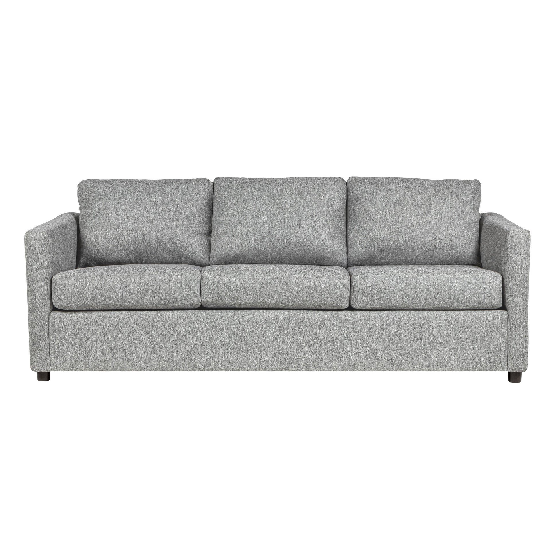 Introduce this sofa to your space, a sophisticated and versatile piece. Upholstered in easy-care light gray polyester fabric, it combines style and practicality. With a plush, high density full foam cushion wrapped in Dacron and sinuous spring support, this sofa provides ultimate comfort and long-lasting durability. Check out our Piasa collection for more options.