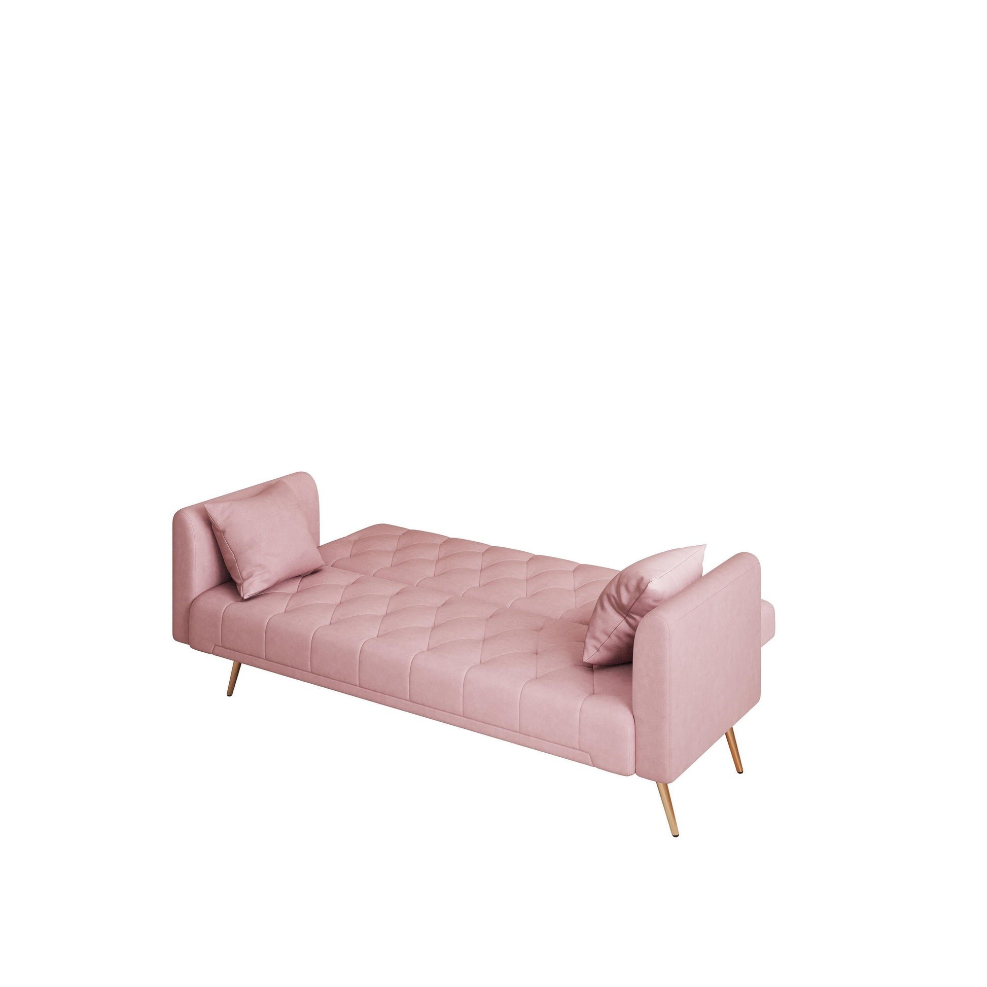 Pink 71 Velvet Convertible 3-seater Sofa Bed with Two Throw Pillows and Metal Legs for Living Room