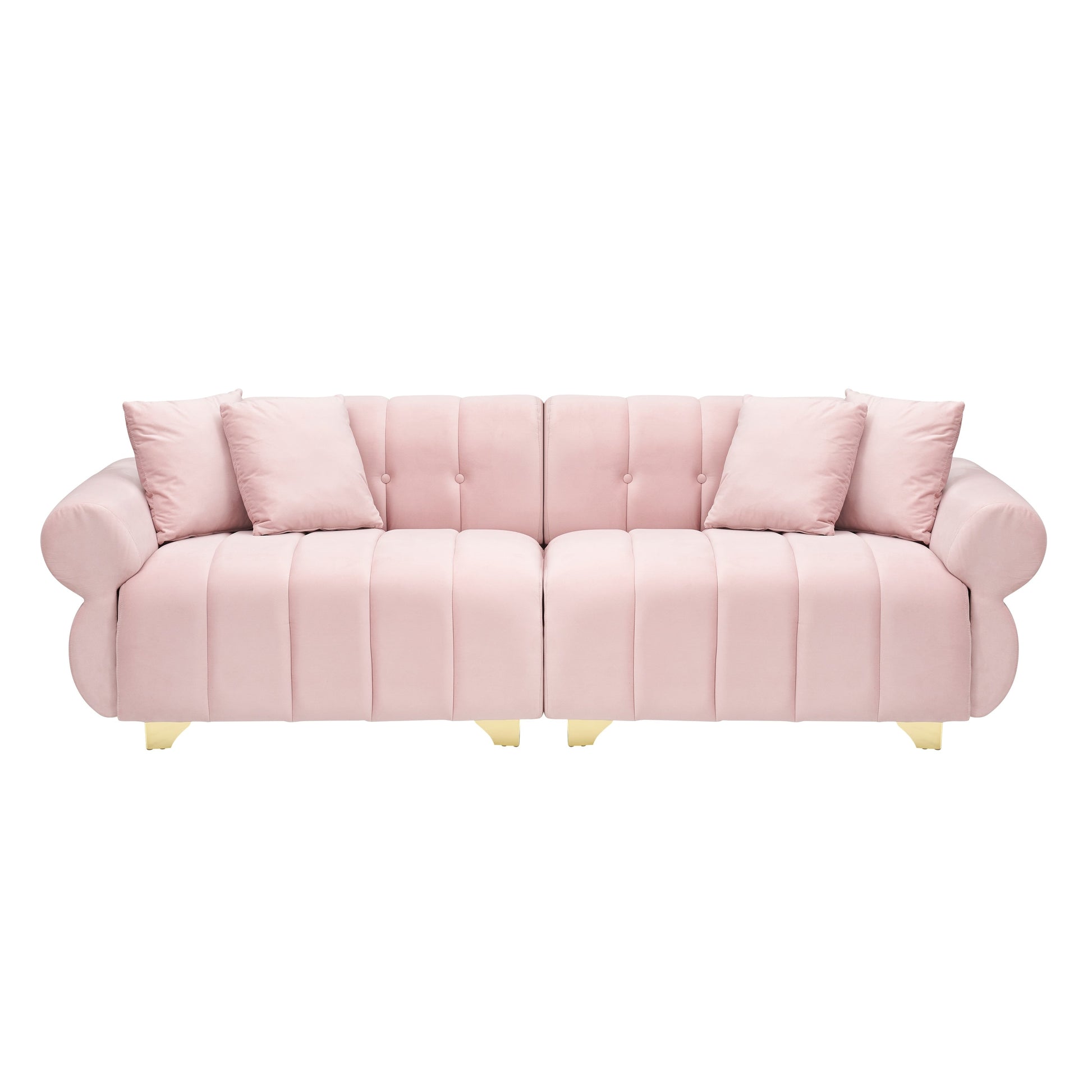 Pink Modern 89 Velvet 3-seater Sofa with Spring-Wrapped Cushions and Metal Feet for Living Room