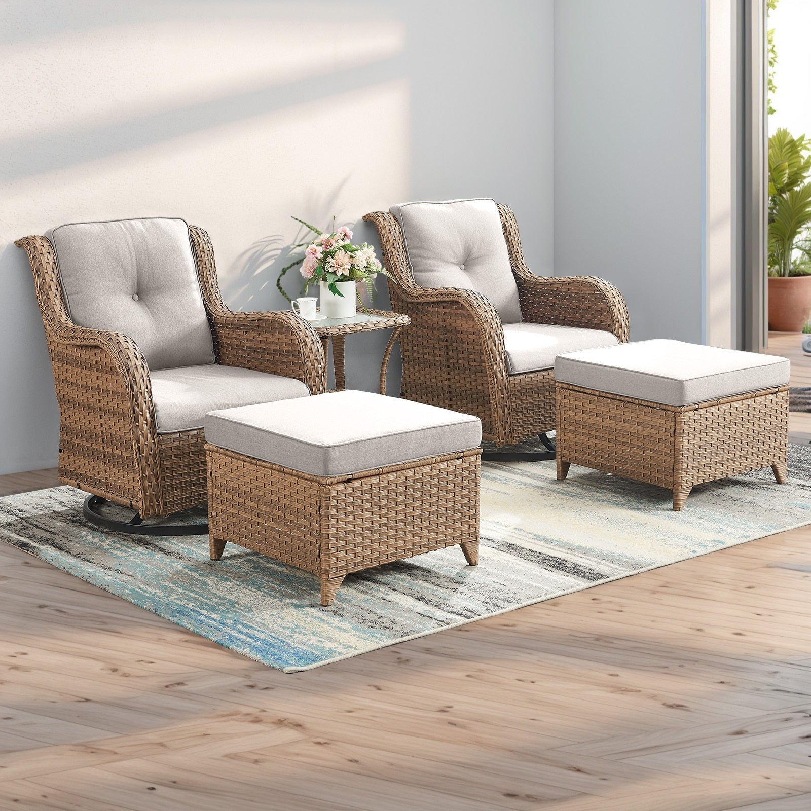 Pocassy 5-Piece Outdoor Furniture Set, Swivel chairs with Ottomans