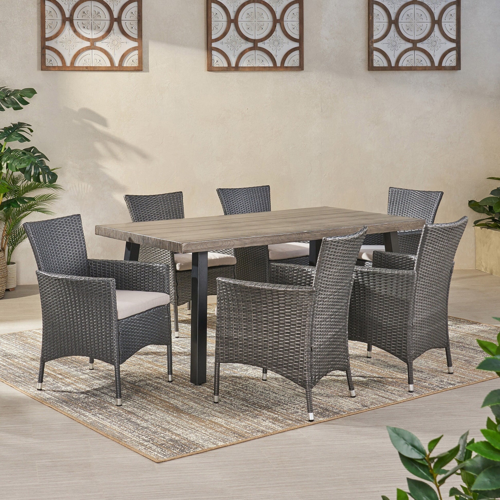 Pointe Outdoor 7 Piece Aluminum Dining Set with Wicker Chairs by Christopher Knight Home