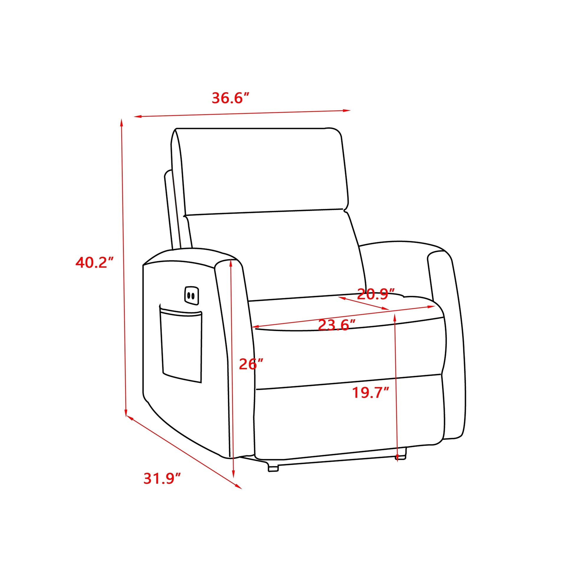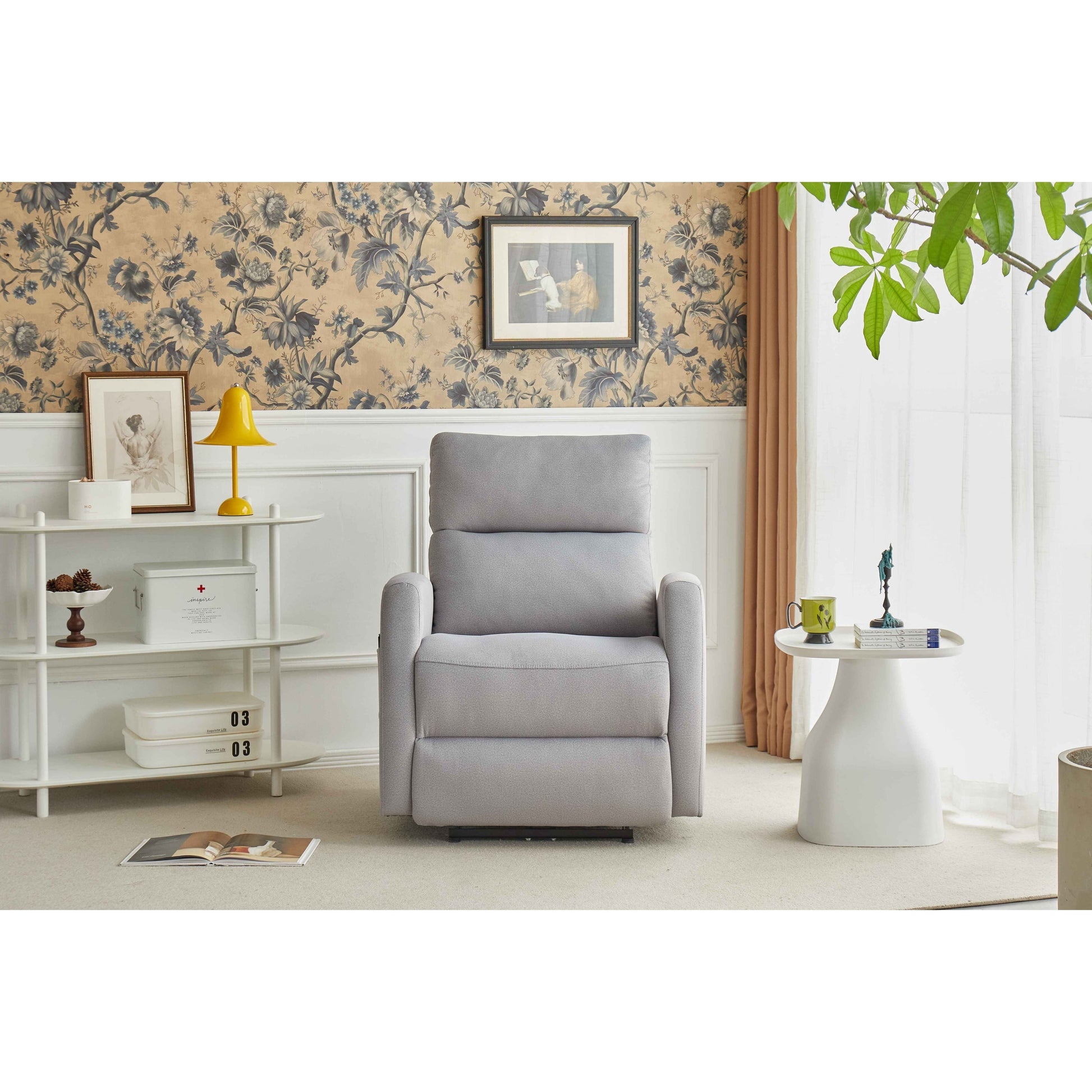 ???The ?Upholstered Recliner is the epitome of comfort and style. ?Crafted with a keen eye for contemporary design, this recliner seamlessly blends into any modern living space. ?The sleek and sophisticated aesthetic is accentuated by clean lines and premium upholstery, ensuring it becomes a centerpiece of style in your home. ?Choose from a range of chic color options to complement your existing decor and elevate your interior design to new heights. ?Effortlessly recline to your preferred position with a simple touch of a button, allowing you to find the perfect angle for ultimate relaxation. ?Whether you're looking to catch up on your favorite TV shows, enjoy a captivating novel, or simply take a rejuvenating nap, this recliner offers unrivaled comfort and versatility.
