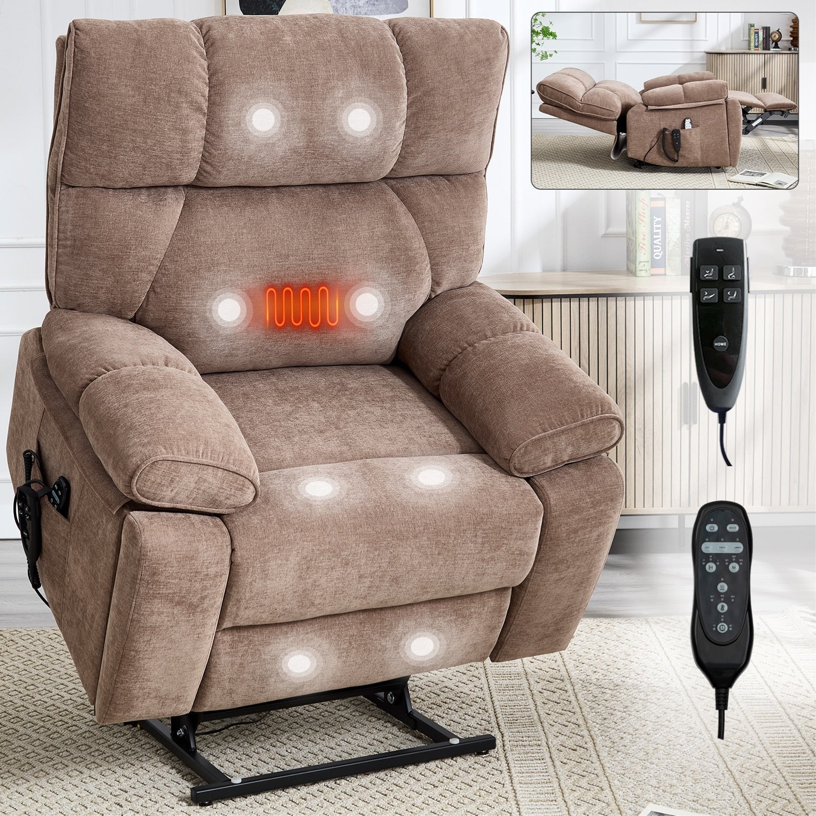 Relax deeper with 8-point vibration massage, lumbar heating, and convenient timer settings. Upholstered in soft chenille fabric, this chair also features dual side pockets for essentials and hidden cup holders to keep your favorite drink close. A perfect combination of style, comfort, and support in one premium lift recliner.
