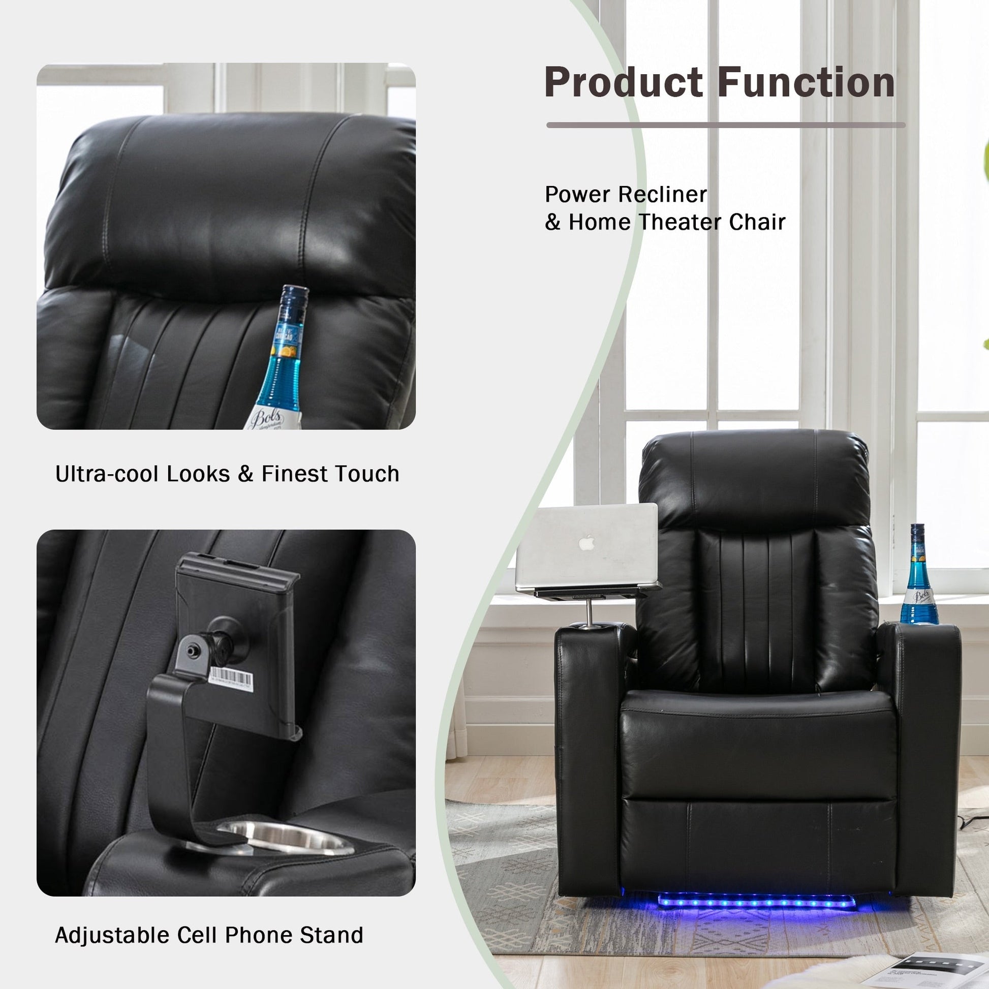 Experience the ultimate in comfort and convenience with this premium power recliner. Designed to provide a luxurious seating experience, this recliner features a smooth electric adjustment system that allows you to find your perfect angle between 100° and 160°. The PU leather upholstery not only looks elegant but is also easy to clean and maintain. The storage arms, cup holders, swivel tray table, and cell phone stand add practicality, making it an ideal choice for relaxation, reading, or even working from home. The sturdy iron and MDF frame ensures durability, while the foam cushioning provides excellent support. This recliner is perfect for small spaces, apartments, or any room where you want to combine style and functionality. Whether you're unwinding after a long day or enjoying a movie, this recliner offers the perfect blend of comfort and convenience.