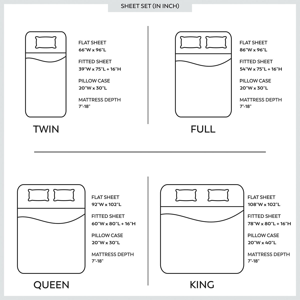 Connoting a great combination of luxury and comfort, the Purity Home 400TC 100% Cotton Ultra-soft Sheet Set is a class above the ordinary. Made using 100% cotton, this sheet set features a percale weave that's unimaginably soft, cool to touch, and cozy enough for a sleep experience that's second to none. It comes in Twin, Full, King, and Queen sizes to best suit your need.Product Features• 400-thread count coupled with 100% cotton for exceptional comfort• Unimaginably soft and cool to touch• Made in Green and STANDARD 100 by OEKO-TEX® certified for credible safety and reliability• Flat and fitted sheets fit up to 18' mattresses• Fitted sheet comes with head/foot tag• True Grip patented fit technology allows for a snug fit assembly, keeping the sheet intact in placeSizing:Twin DimensionsFlat sheet: 66 inches wide x 96 inches longFitted sheet: 39 inches wide x 75 inches longPillowcases: 20 inches wide x 30 inches longFull DimensionsFlat sheet: 82 inches wide x 96 inches longFitted sheet: 54 inches wide x 75 inches longPillowcases: 20 inches wide x 30 inches longQueen DimensionsFlat sheet: 92 inches wide x 102 inches longFitted sheet: 60 inches wide x 80 inches longPillowcases: 20 inches wide x 30 inches longKing DimensionsFlat sheet: 108 inches wide x 102 inches longFitted sheet: 78 inches wide x 80 inches longPillowcases: 40 inches wide x 20 inches long