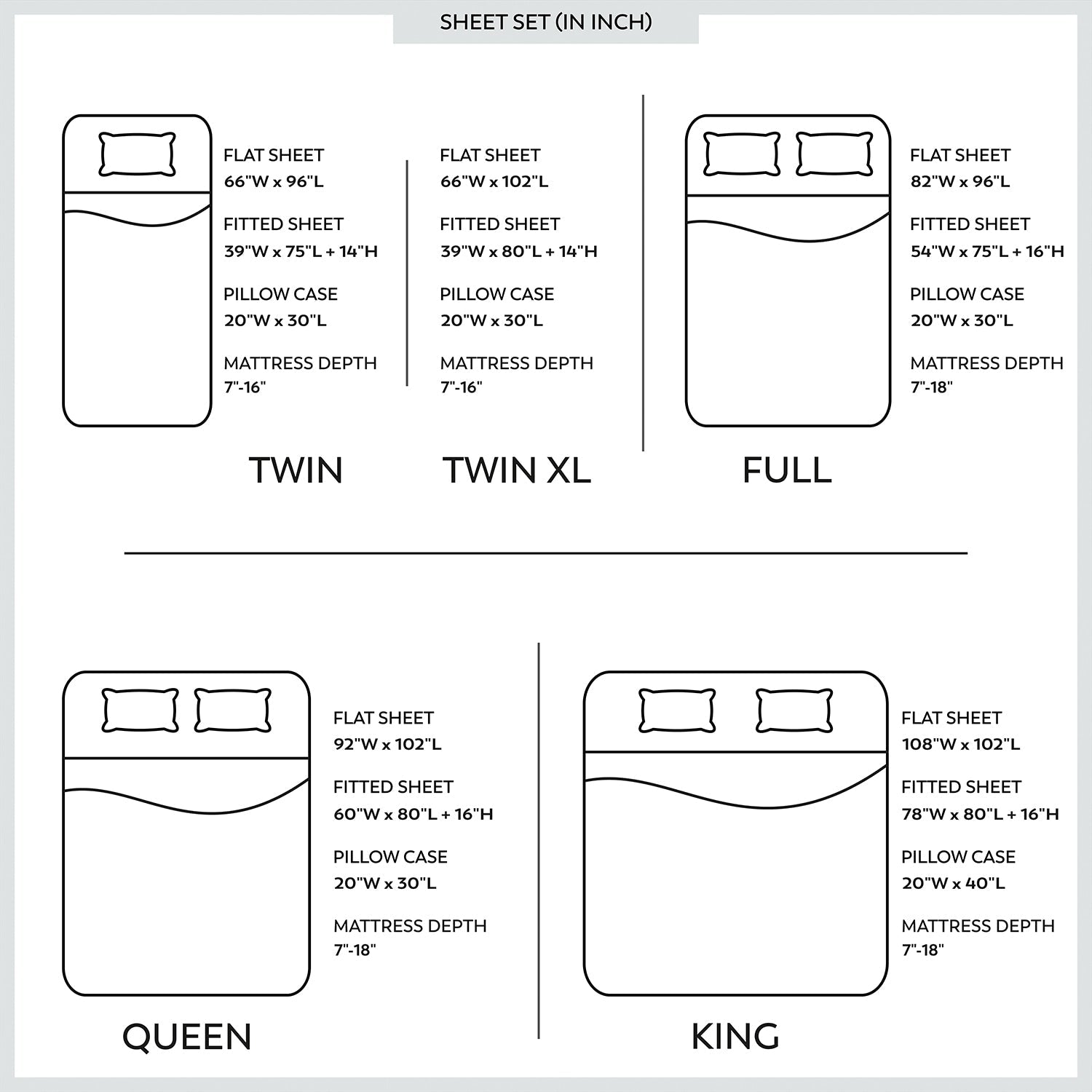 • Full, Queen, and King sizes come with 2 pillowcases, 1 fitted sheet & 1 flat sheet