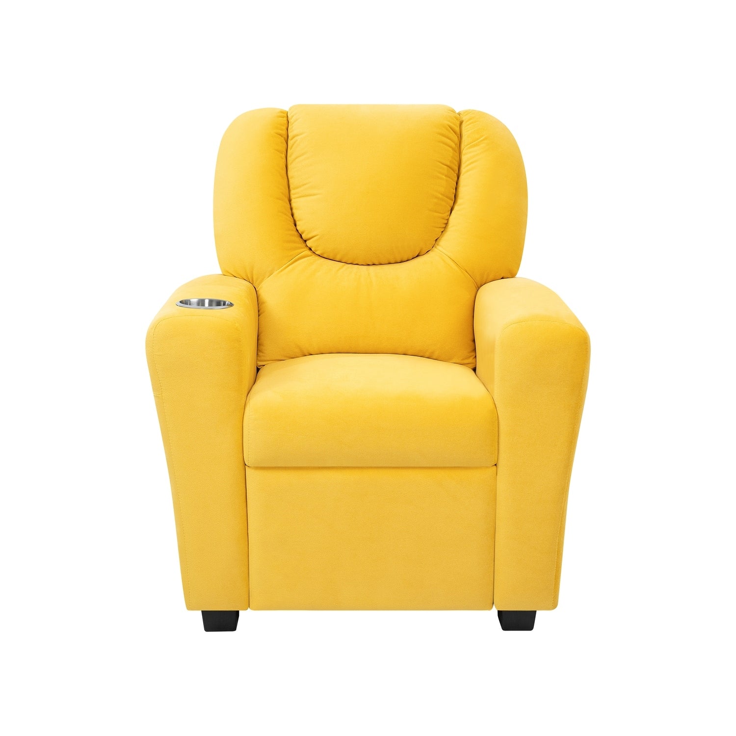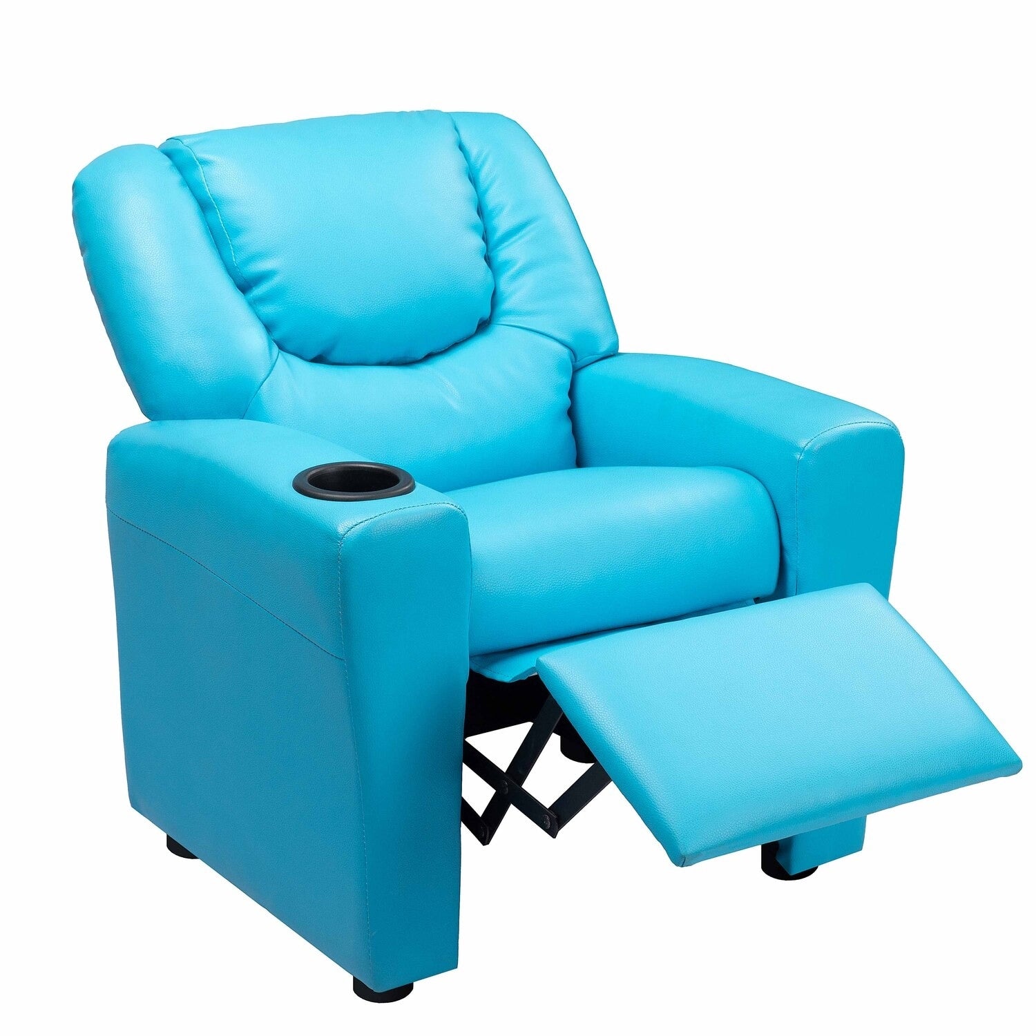 CONVENIENT KIDS RECLINER CHAIR WITH BUILT-IN CUP HOLDER: Equipped with an integrated cup holder, Our kids' recliners keeps drinks within reach, helping to minimize spills and keep your child’s favorite beverages secure while they lounge.