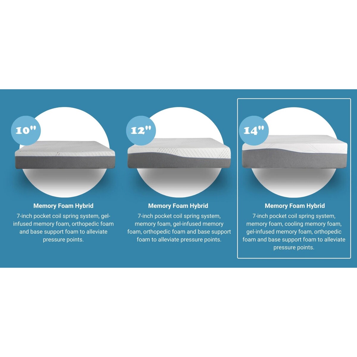 Queen Size- Kruger 14 Medium Cooling Gel Memory Edge Support Pocket Spring Removable Cover Hybrid Mattress