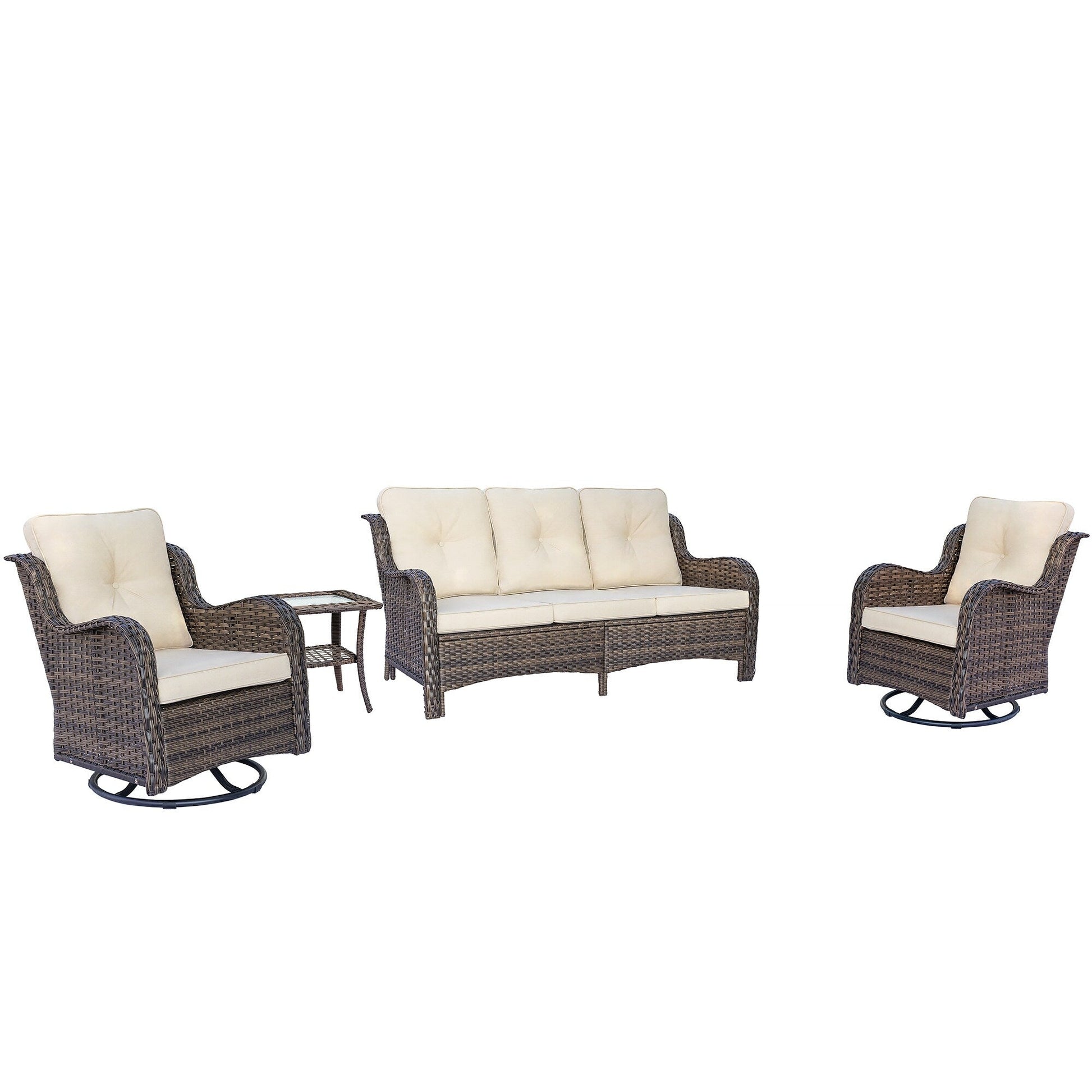 Upgrade your outdoor living experience with this conversation set that provides luxury and comfort. Whether you're lounging with a book or entertaining friends, this set is sure to enhance your leisure time. With its durable construction and stylish design, this outdoor furniture set is a must-have for any outdoor space. Crafted from weather-resistant PE rattan wicker and a rust-proof reinforced steel frame, this sofa set is designed to withstand the elements for years. The 3.54-inch comfortable cushions add an extra layer of comfort and style, ensuring you can spend more time enjoying your outdoor space, providing ample seating for you and your guests. The seats are designed to be very big and wider, with ergonomic designs that ensure maximum comfort for extended periods of relaxation.