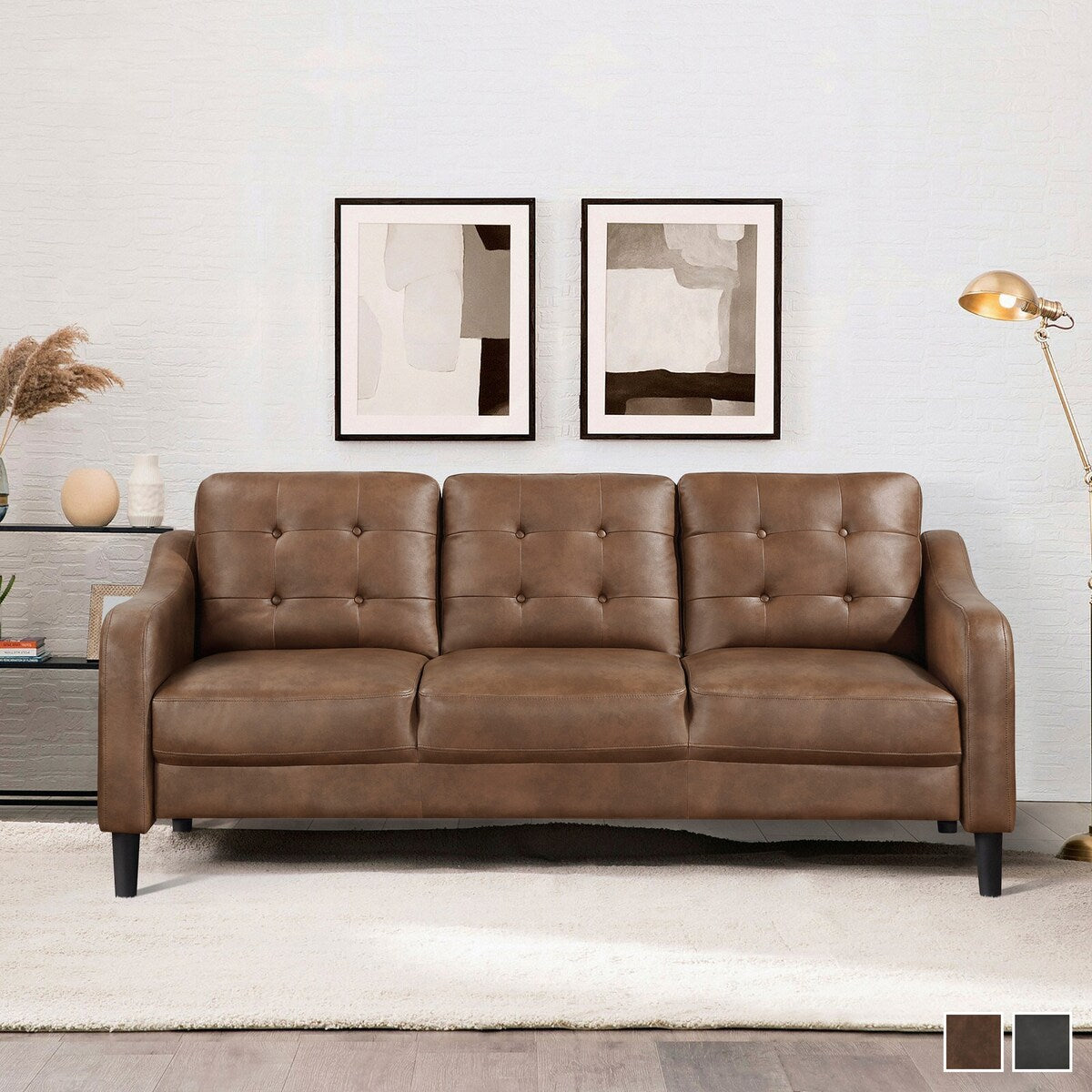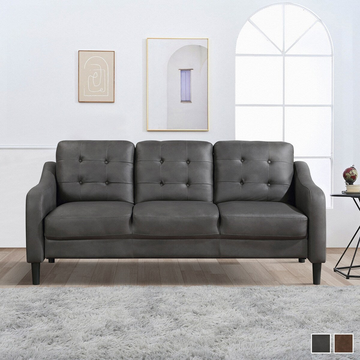 One (1) piece of living room sofa Plywood frame construction Solid-hue polished microfiber upholstery Button-tufted back cushion Sloped arm and black tapered legs Attached back and seat cushion Packed and shipped in (1) box