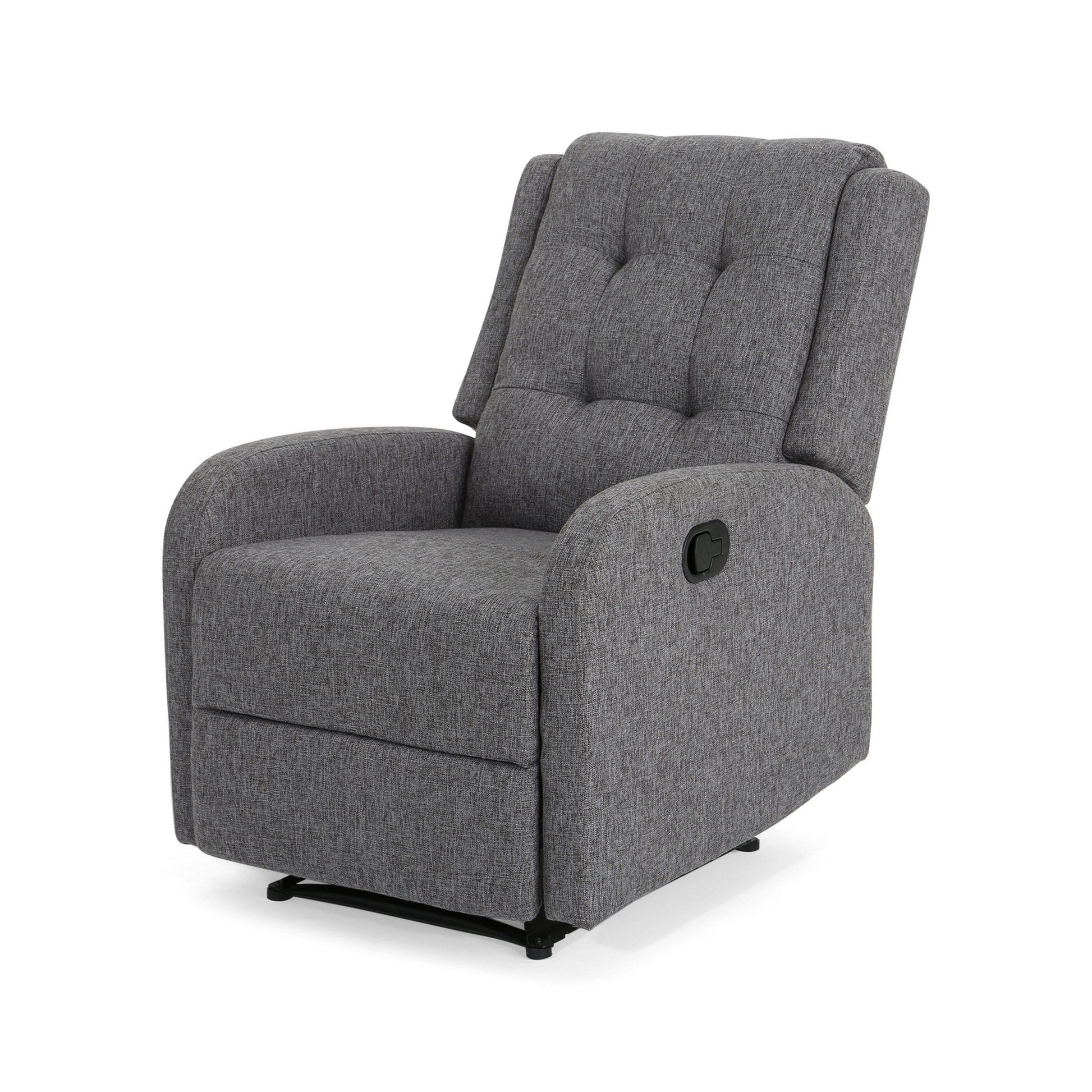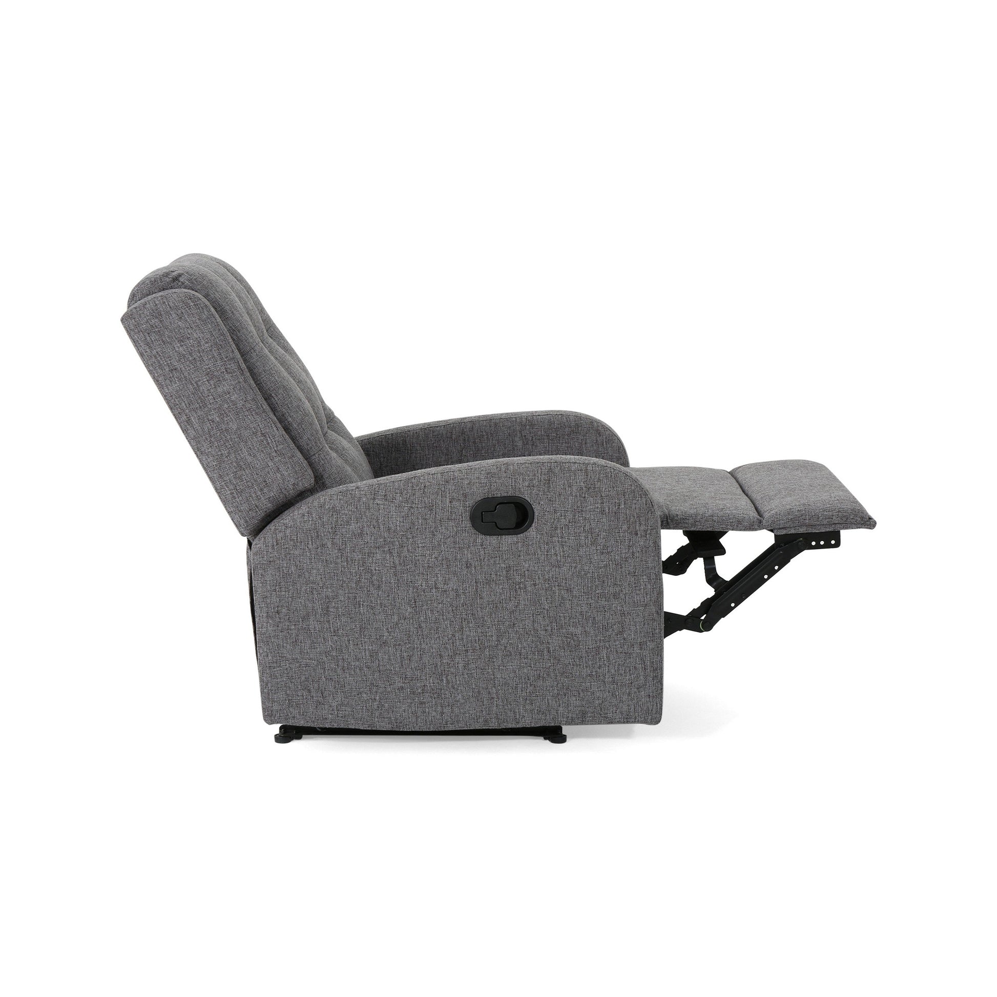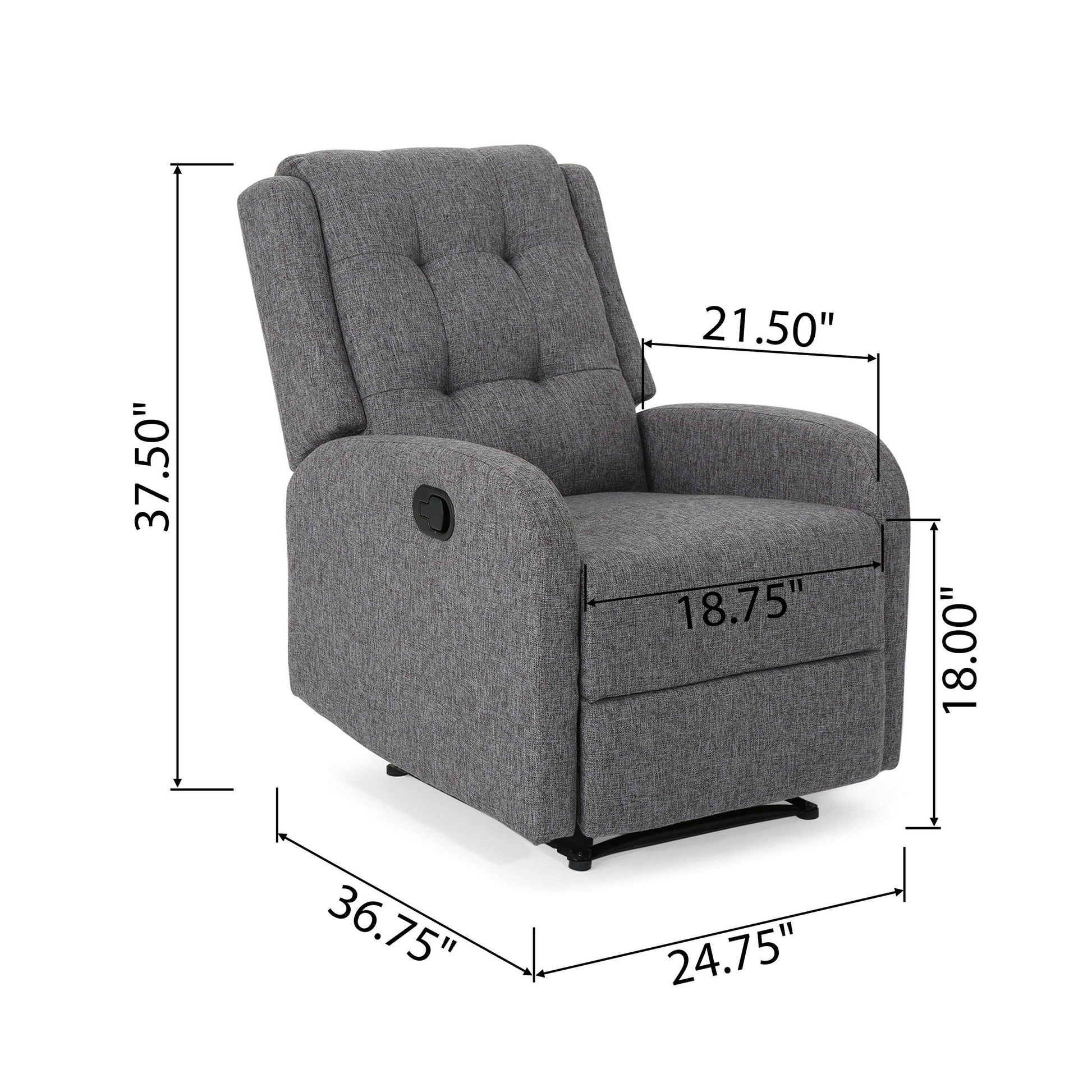 Enhance your space with the elegance of this manual standard recliner featuring charcoal gray upholstery. With its compact dimensions, it fits into smaller spaces while providing ample relaxation. Crafted with durable materials, it promises long-lasting stability and support. Whether placed in a living room, bedroom, or home office, it offers the perfect spot to unwind and enjoy your space.