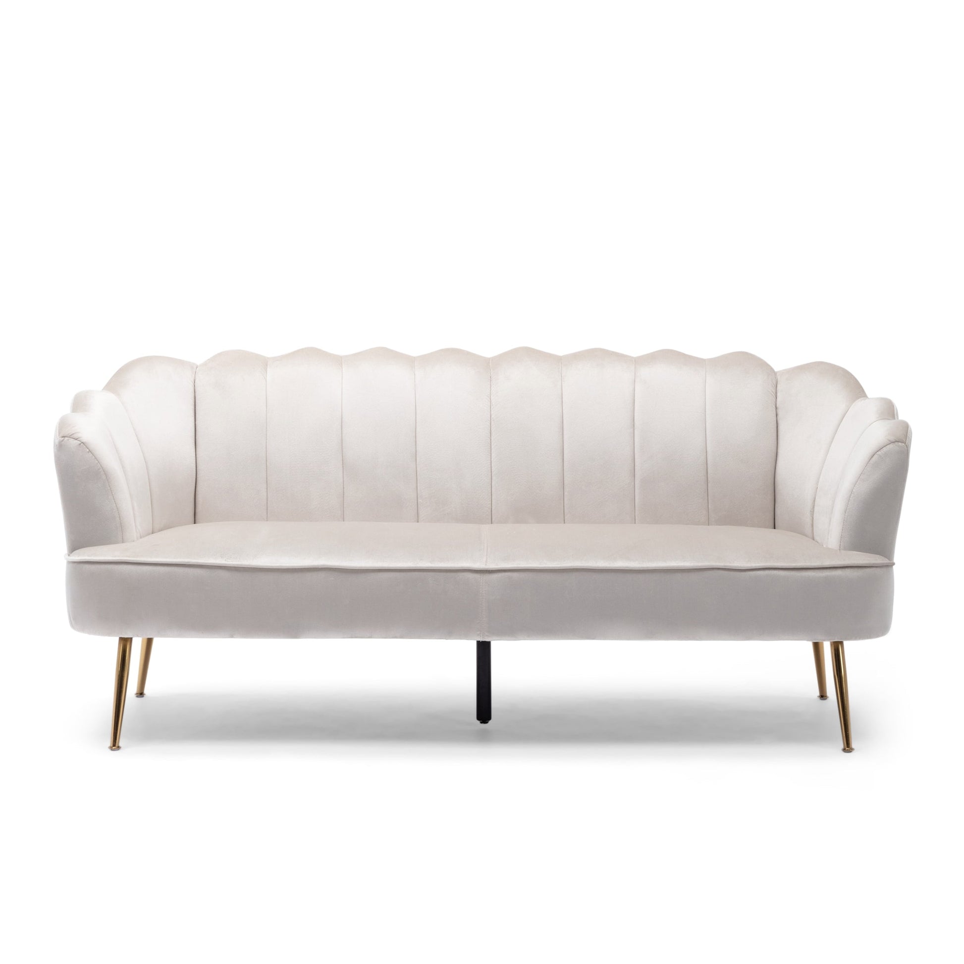 Indulge in luxury with the Reitz Glam Velvet Shell Sofa by Christopher Knight Home. The scalloped, shell seat back and six stunning velvet colors create a glam look that will elevate your living space. The sofa features goldtone tapered iron legs and foam fill for comfort and durability. Choose from turquoise, yellow, blush, teal, berry, or beige to complement your decor.